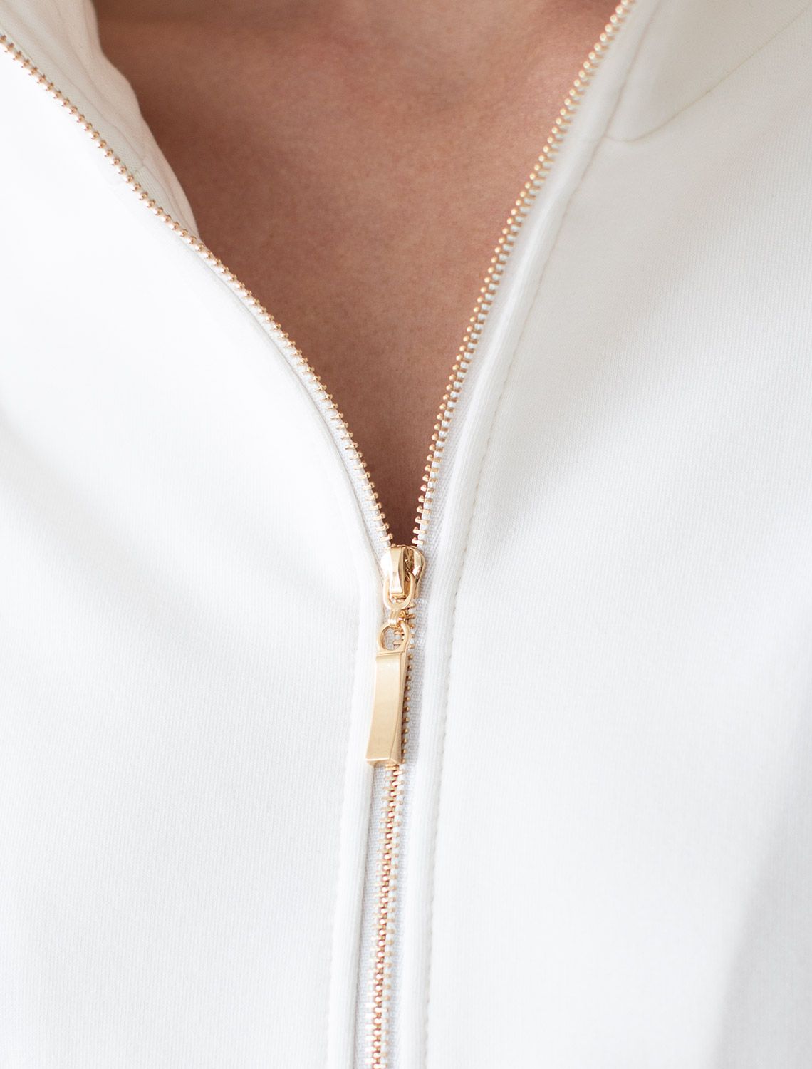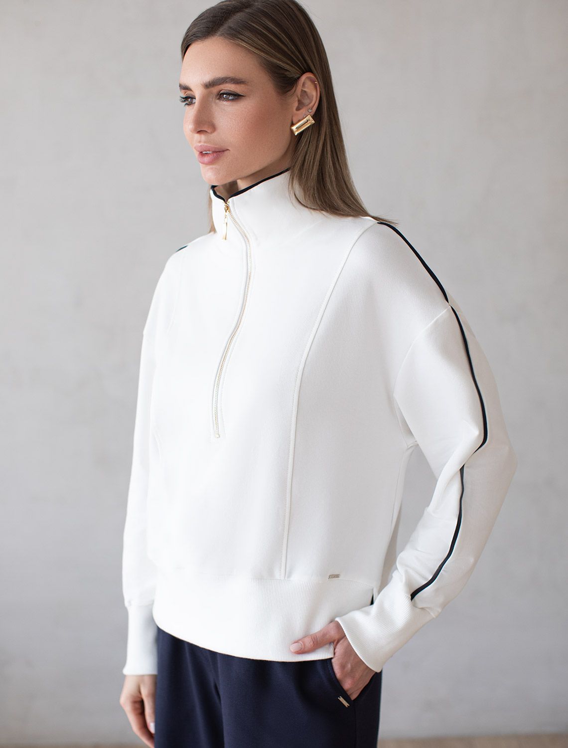Ст.цена 2490р Джемпер из эластичного футера двухнитки с воротом на молнии D49.086 белый