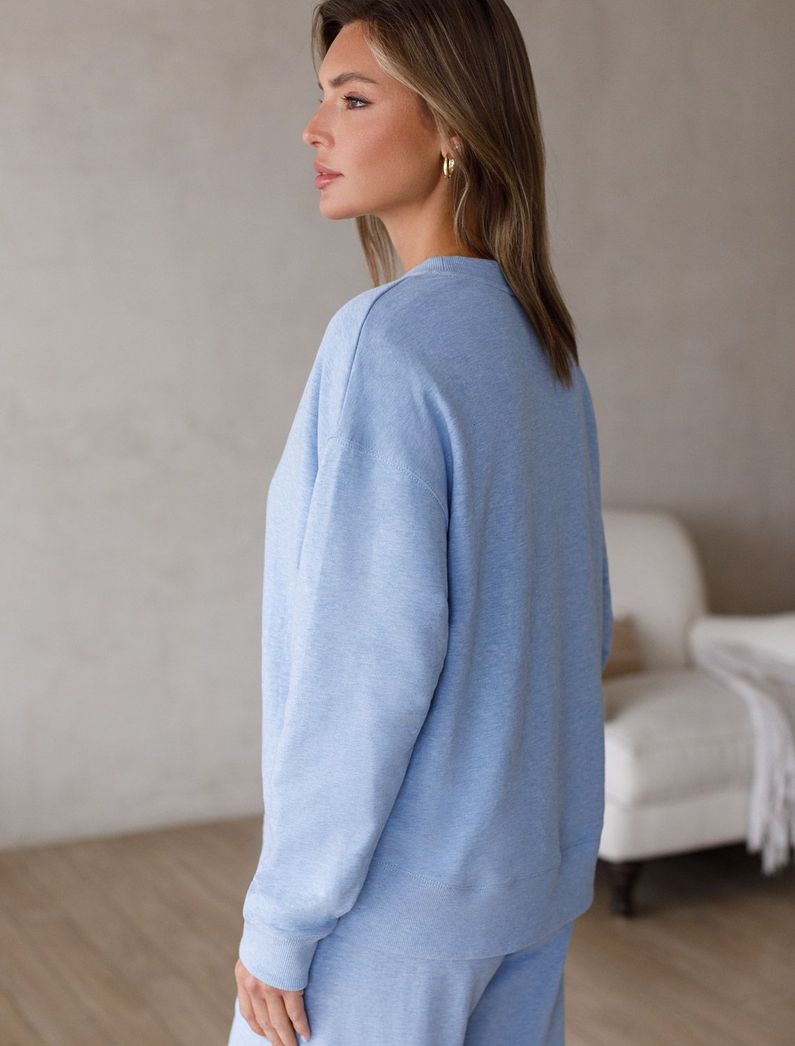 Джемпер из петельчатого футера двухнитки с эластаном D49.140 голубой меланж_dreams