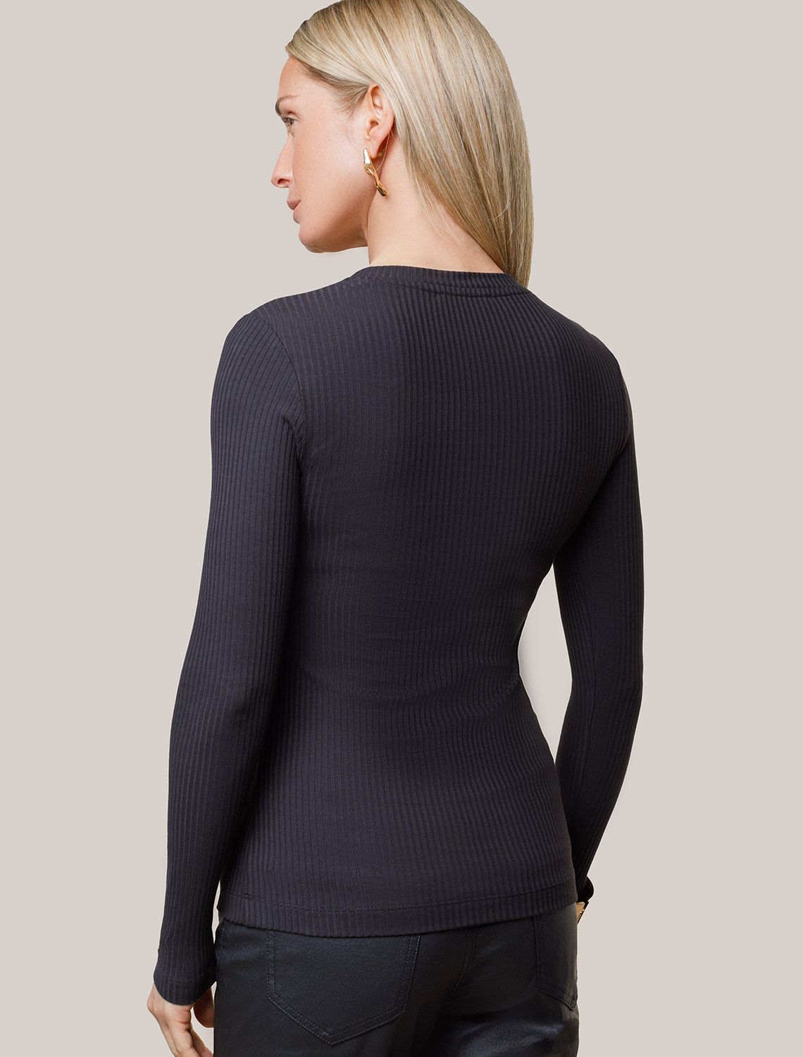 Джемпер с круглым вырезом выполнен из фактурного трикотажа в широкий рубчик. Модель идеально сидит по фигуре не сковывая движения. Хлопковый трикотаж поддерживает оптимальную температуру тела, поэтому в изделии будет комфортно в течении всего дня. Наличие эластана в составе гарантирует формоустойчивости. Базовая модель впишется в любой гардероб. черный