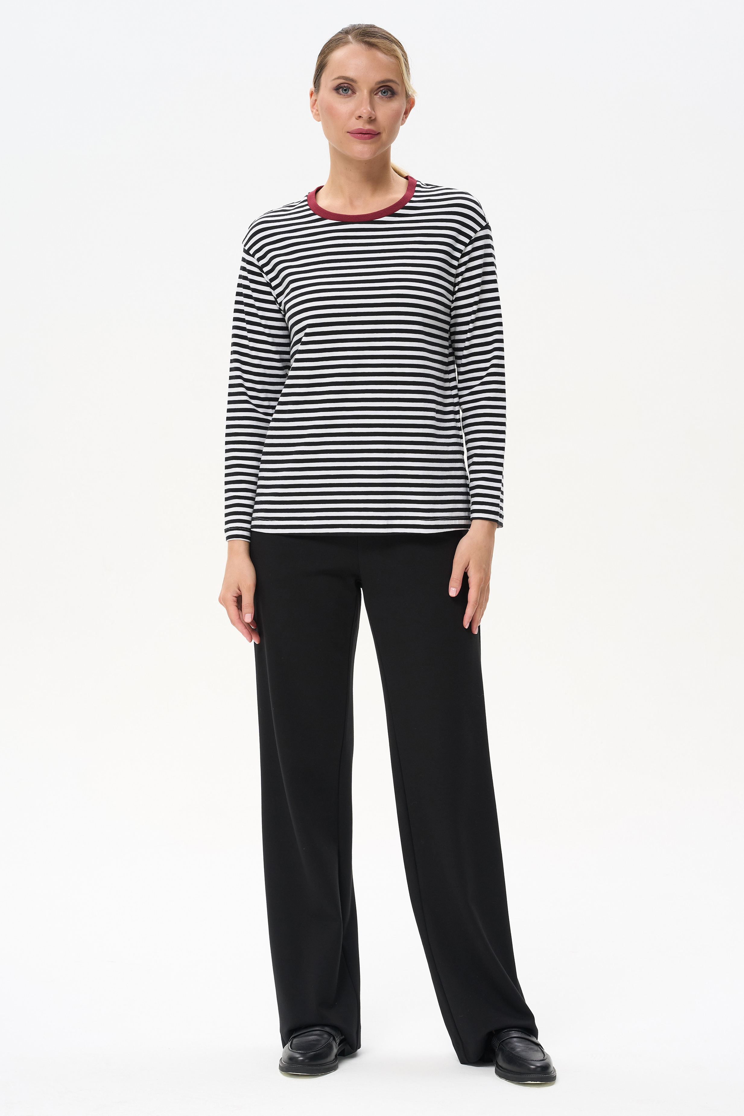 92% хлопок/ 8% эластан Комфортный лонгслив из хлопкового трикотажного полотна с эластаном, прямого силуэта. Круглый вырез горловины окантован хлопковым полотном рибана. Длинные втачные рукава. Рост модели на фото 177.