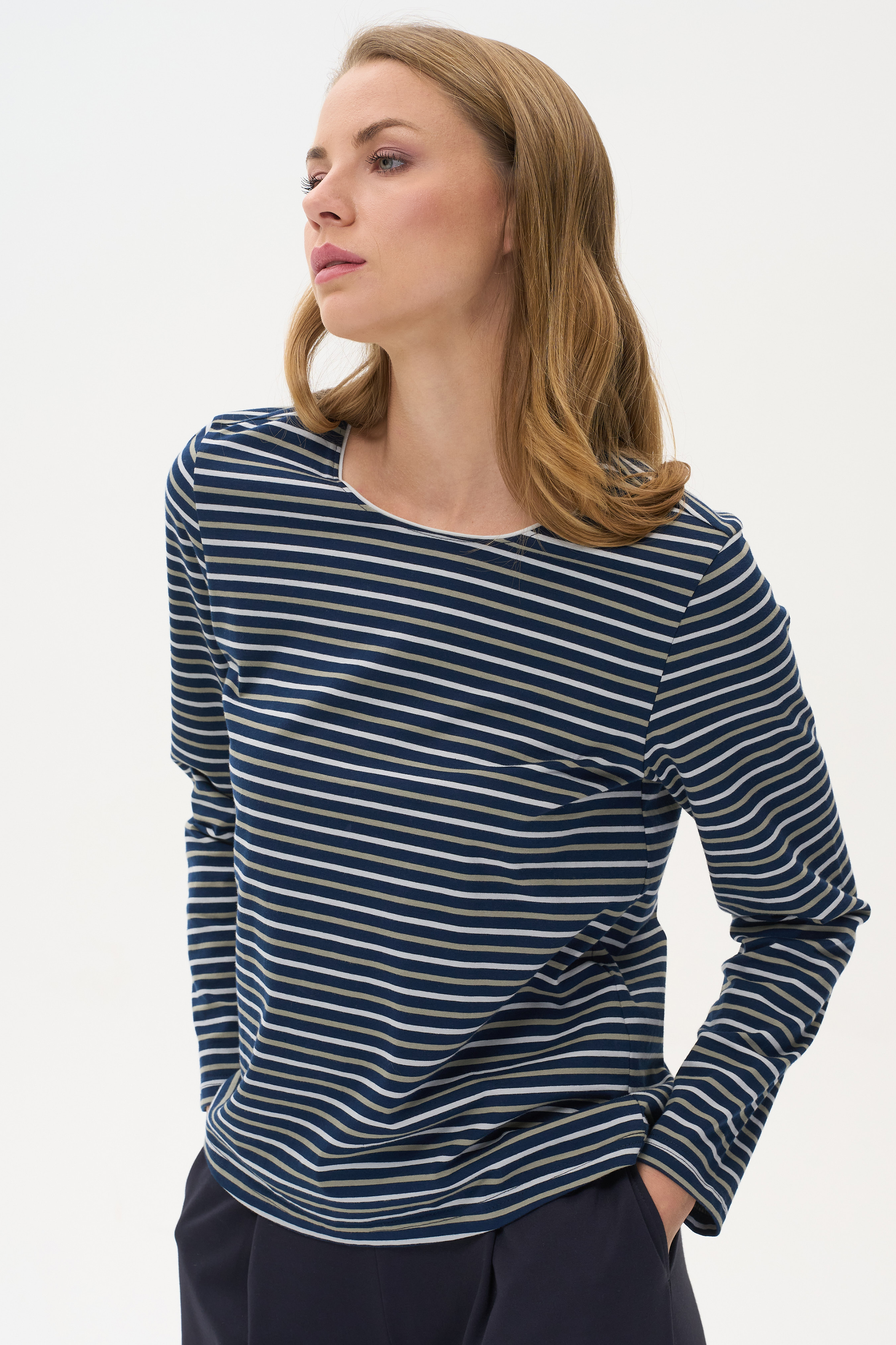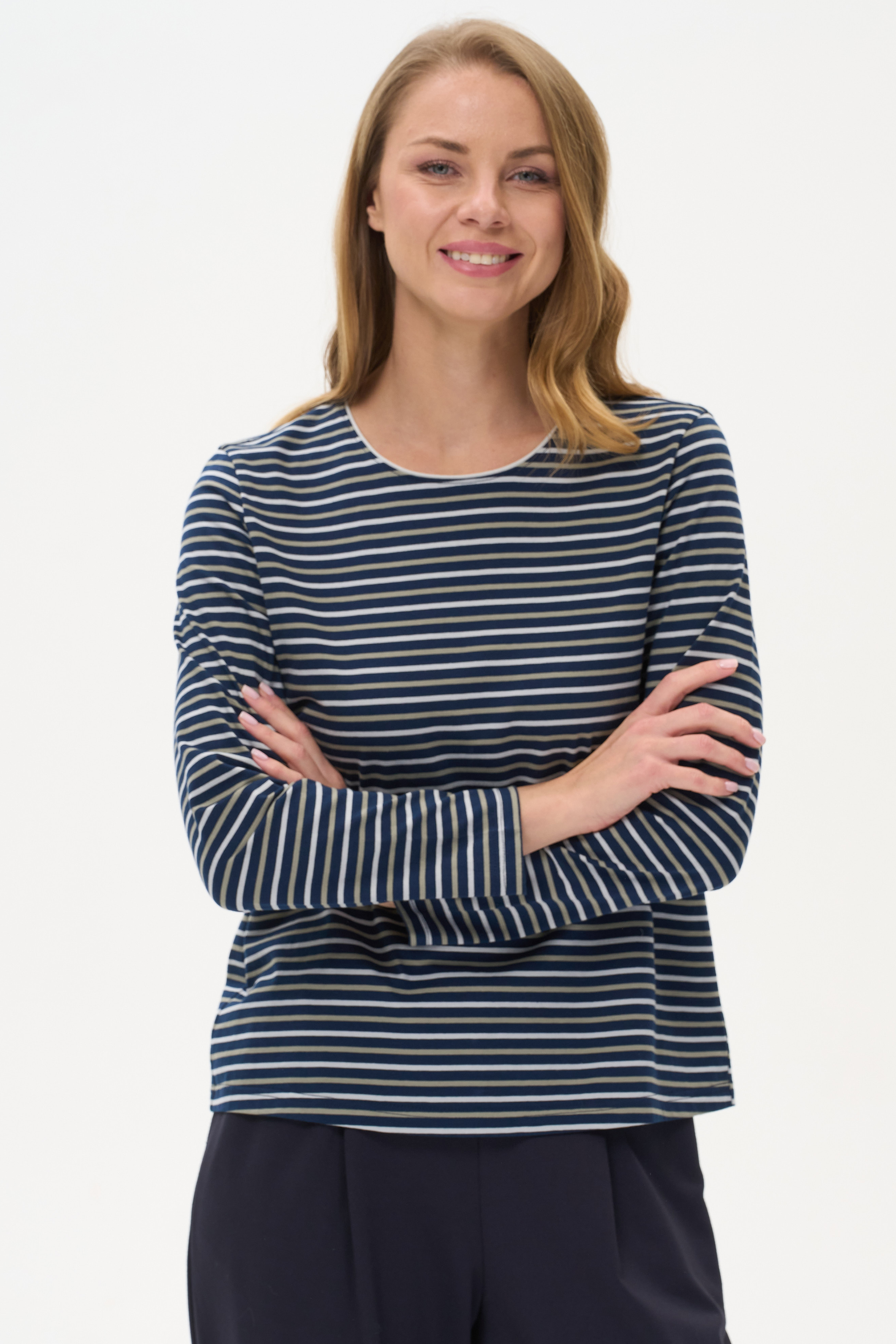 100% хлопок Повседневный лонгслив из хлопкового полотна качества пенье. Модель с круглым вырезом горловины и длинными втачными рукавами. Рост модели 178 см.