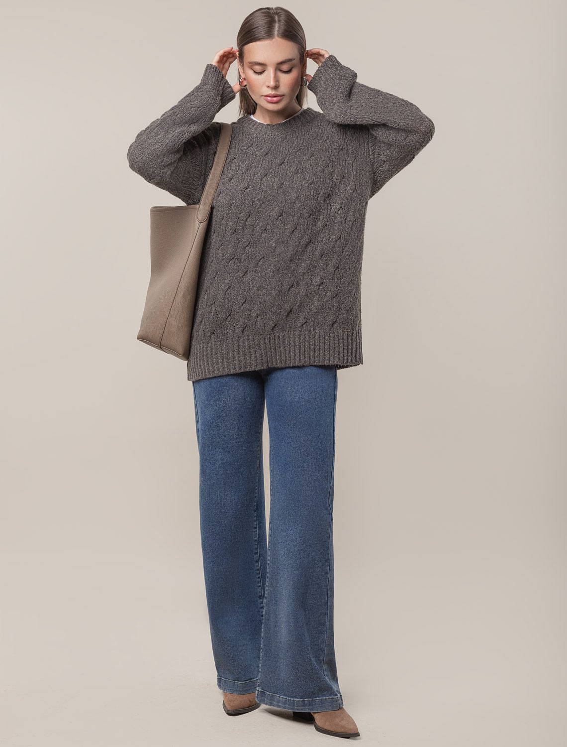 Джемпер крупной вязки из уютной пряжи с ангорой и мохером D39.333 кофе меланж