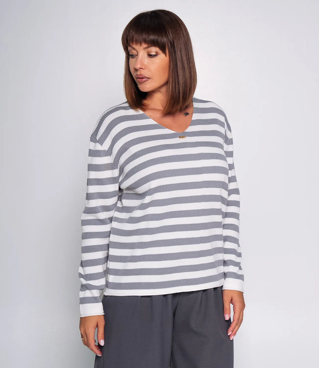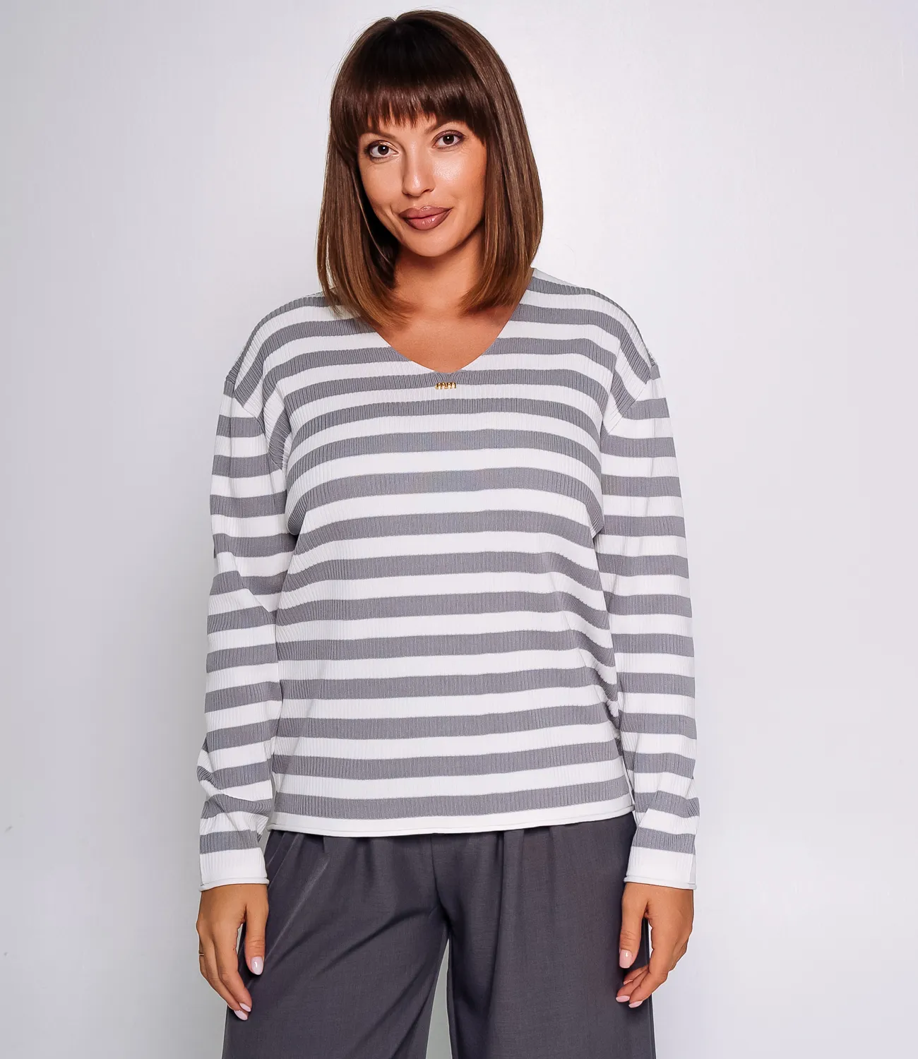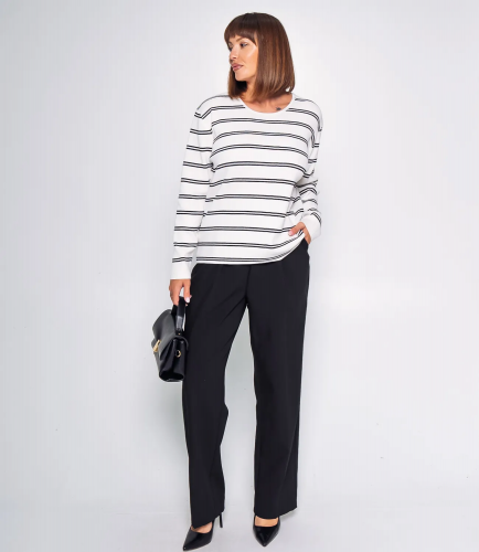 Джемпер — это элегантный и стильный элемент гардероба, который подчеркивает уникальность каждой женщины. Джемпер выполнен в стильном и универсальном дизайне с горизонтальными полосами, которые придают модели современный и динамичный вид. Классический круглый вырез горловины, а также широкие резинки на манжетах и по низу изделия обеспечивают комфортную посадку и сохраняют форму. Свободный крой делает джемпер удобным для повседневной носки, обеспечивая свободу движений и лёгкость в сочетании с другими предметами гардероба. Состав ткани — 65% хлопок и 35% полиэстер.Для удобства покупателей на странице доступна таблица размеров, что поможет им легко найти идеальный размер. Предложенная цена является доступной, а значит, ваши клиентки смогут с легкостью добавить этот стильный элемент в свой гардероб. Не упустите шанс предложить своим покупателям этот превосходный джемпер, который позволят им чувствовать себя уверенно и элегантно в любой обстановке! Подарите вашим клиентам возможность выделиться и продемонстрировать свой уникальный стиль с этим удивительным изделием!