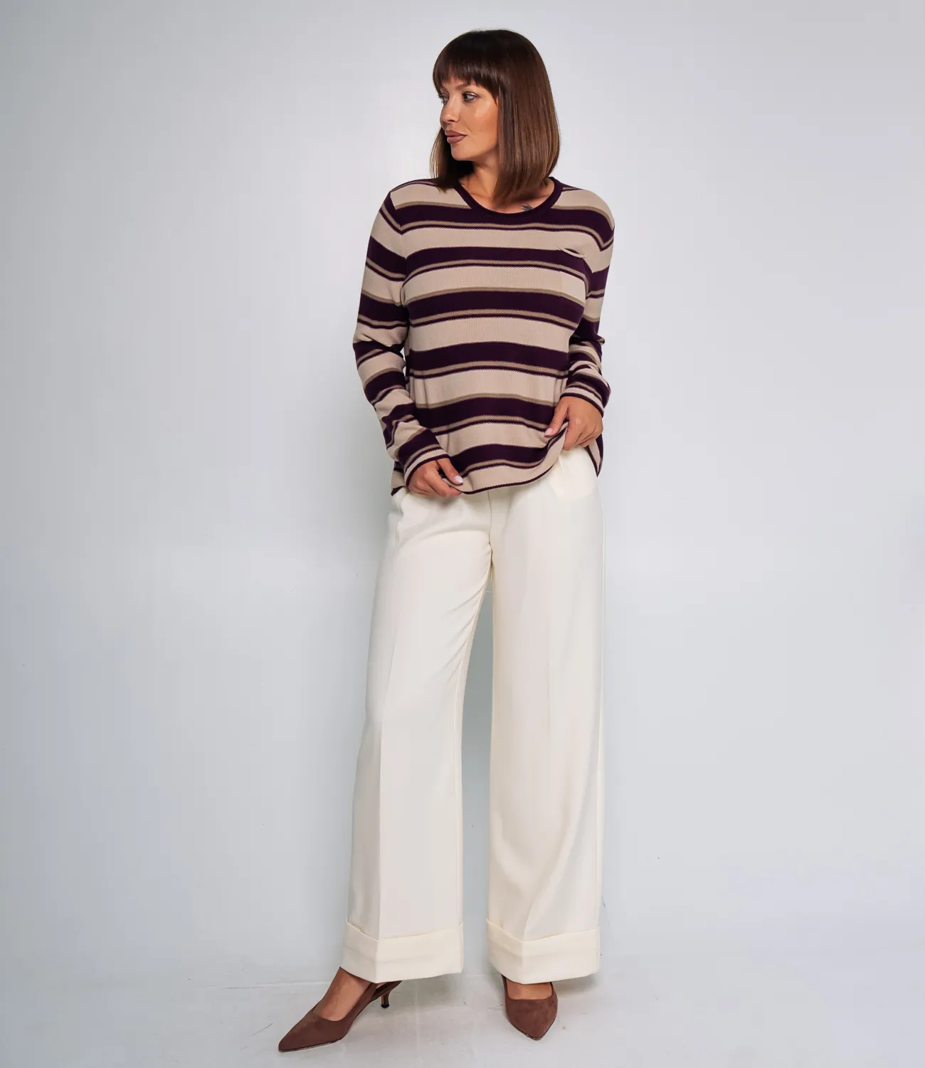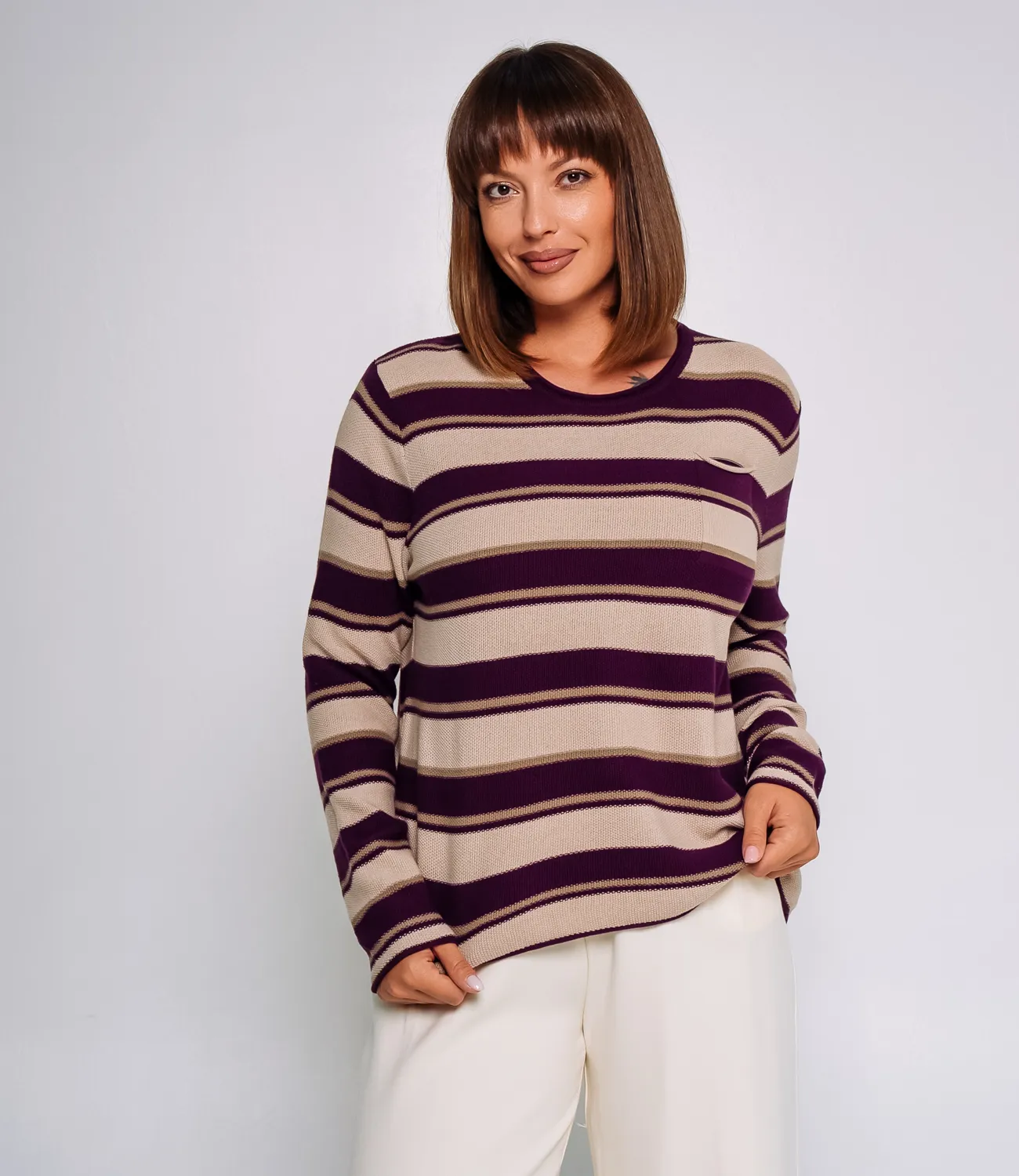 Джемпер — это элегантный и стильный элемент гардероба, который подчеркивает уникальность каждой женщины. Выполнен из плотного вязанного материала с мягкой и тёплой текстурой. Фасон свободный, прямой, что позволяет легко и удобно носить изделие без утяжеления и ограничений движений. Длинные рукава имеют классическую посадку, не слишком облегая руки. Горловина круглая, обработана трикотажной планкой того же цвета, что и одна из полос, что придаёт аккуратность и завершённость модели. Основной дизайн — горизонтальные полосы двух цветов Состав ткани — 80% хлопок и 20% полиэстер. Для удобства покупателей на странице доступна таблица размеров, что поможет им легко найти идеальный размер. Предложенная цена является доступной, а значит, ваши клиентки смогут с легкостью добавить этот стильный элемент в свой гардероб. Не упустите шанс предложить своим покупателям этот превосходный джемпер, который позволят им чувствовать себя уверенно и элегантно в любой обстановке! Подарите вашим клиентам возможность выделиться и продемонстрировать свой уникальный стиль с этим удивительным изделием! Рост модели 168, 89-63-90.