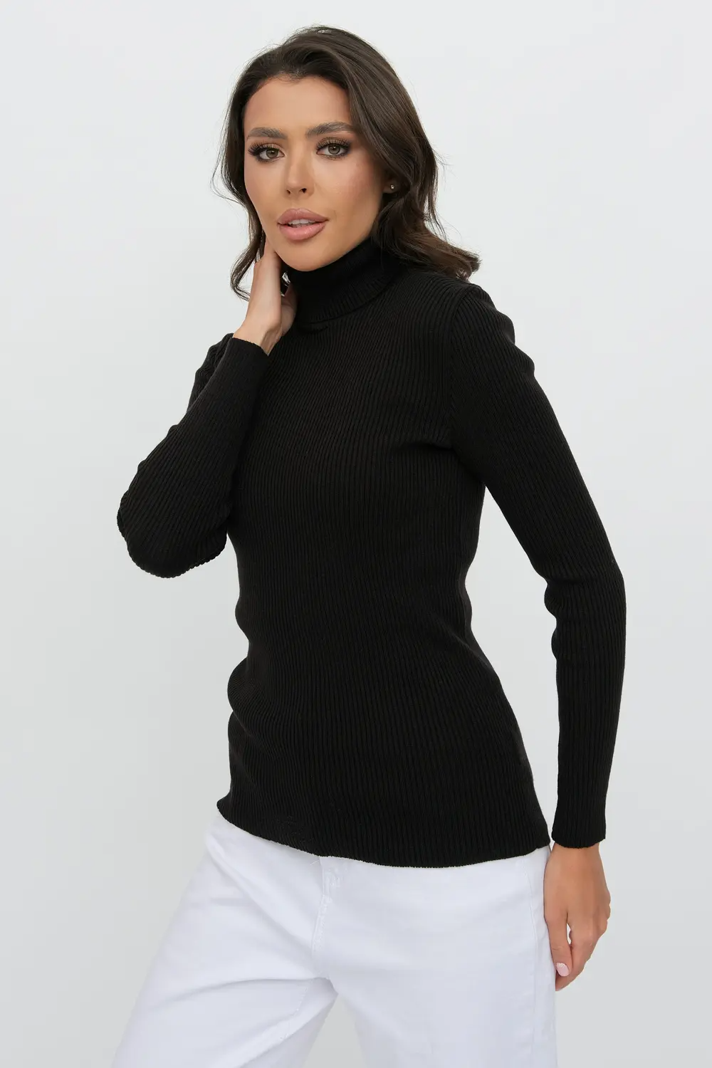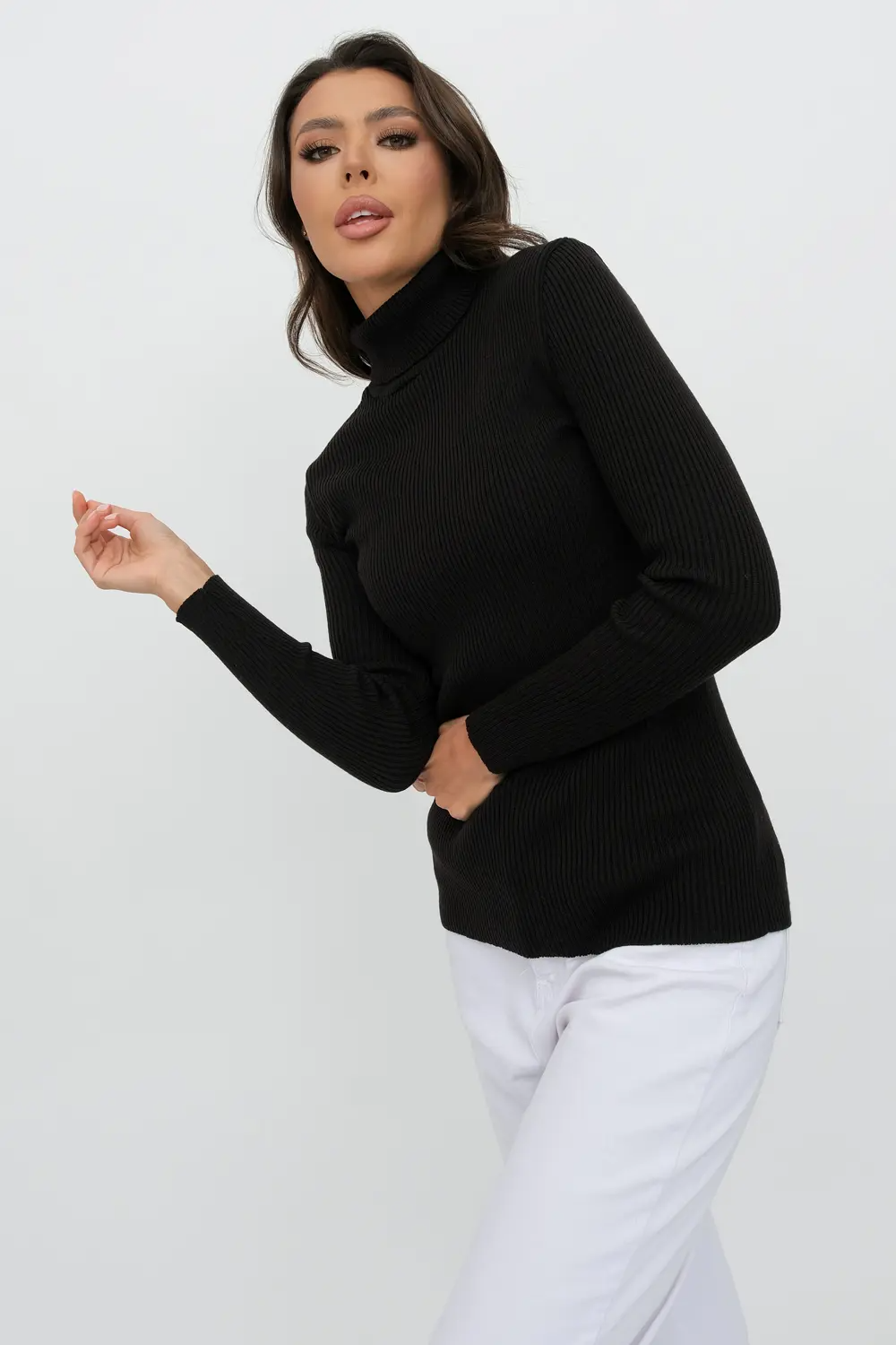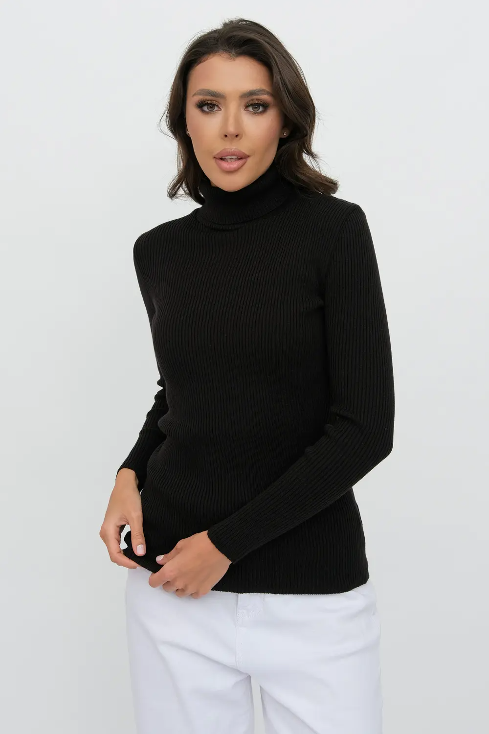 Классический джемпер-водолазка выполнен эластичным переплетением "лапша".  Рукава втачные длинные. черный