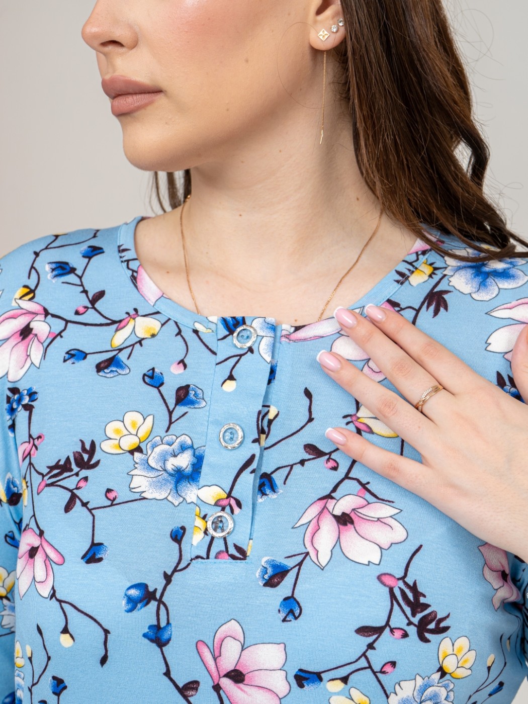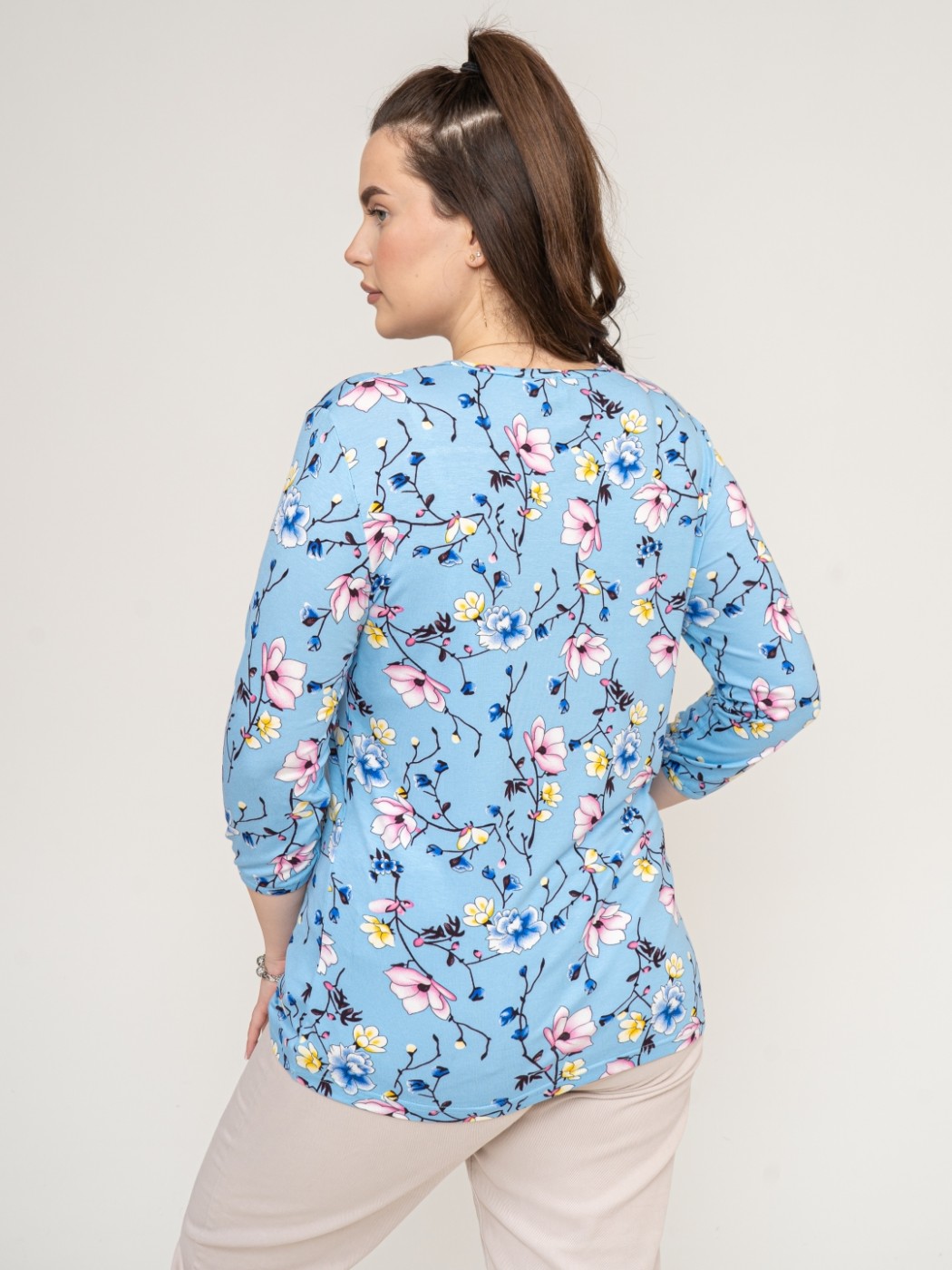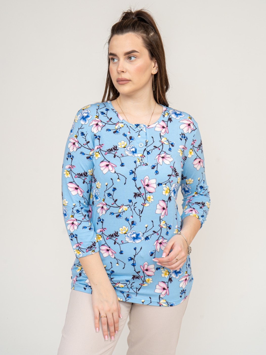 Джемпер Планка рукав 3/4 небесный/цветы