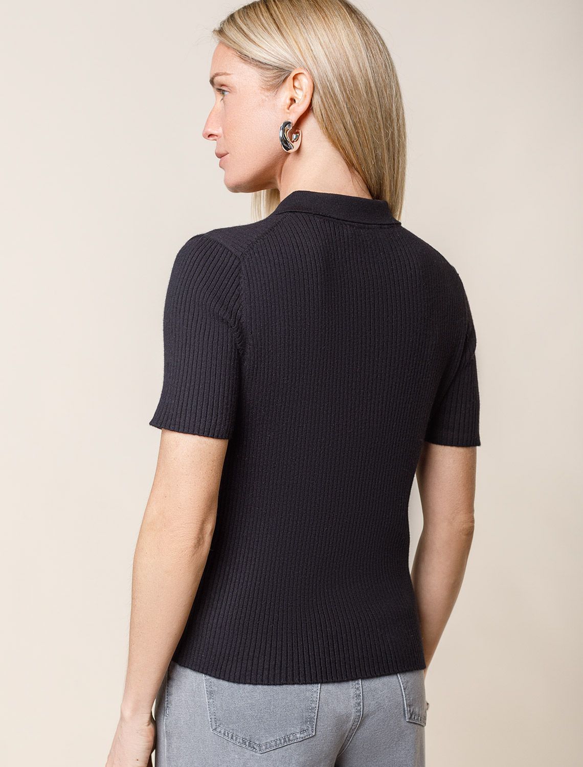Джемпер-поло с застежкой на молнии из хлопка с кашемиром D39.351 черный