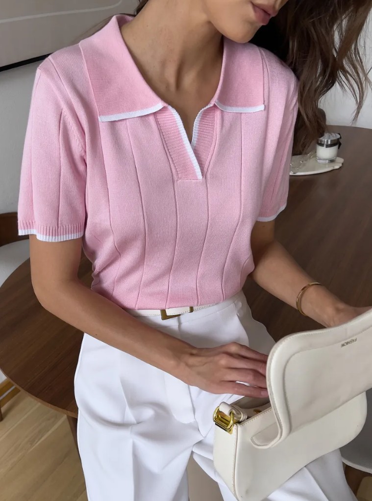 Джемпер-поло (вязаный трикотаж) БЕЖЕВЫЙ,БЕЛЫЙ,РОЗОВЫЙ,ЧЕРНЫЙ