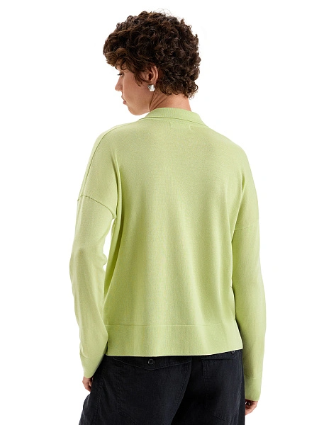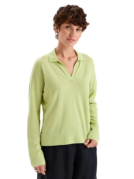 Особенности: Антибактериальные свойства, Воротник-поло, Гипоаллергенный материал, Легкая нежная пряжа, Мягкие манжеты, Не колется, Не стесняет движений, Невесомый базовый свитер, Нежный к коже, Нейтрализация запахов, Премиальный трикотаж, Разрезы по бокам внизу изделия, Свободный силуэт, Универсальная модель