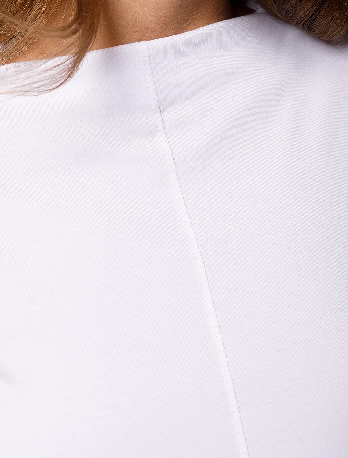 Джемпер прямого силуэта с цельнокроеным воротом выполнен из премиального хлопка. Наличие эластана в составе гарантирует комфорт и формоустойчивостиь изделия. Вертикальный декоративный шов спереди, визуально вытягивает силуэт. Базовая модель хорошо впишется в любой гардероб и подойдет для офисного дресс-кода. На рукаве металлический логотип бренда. белый