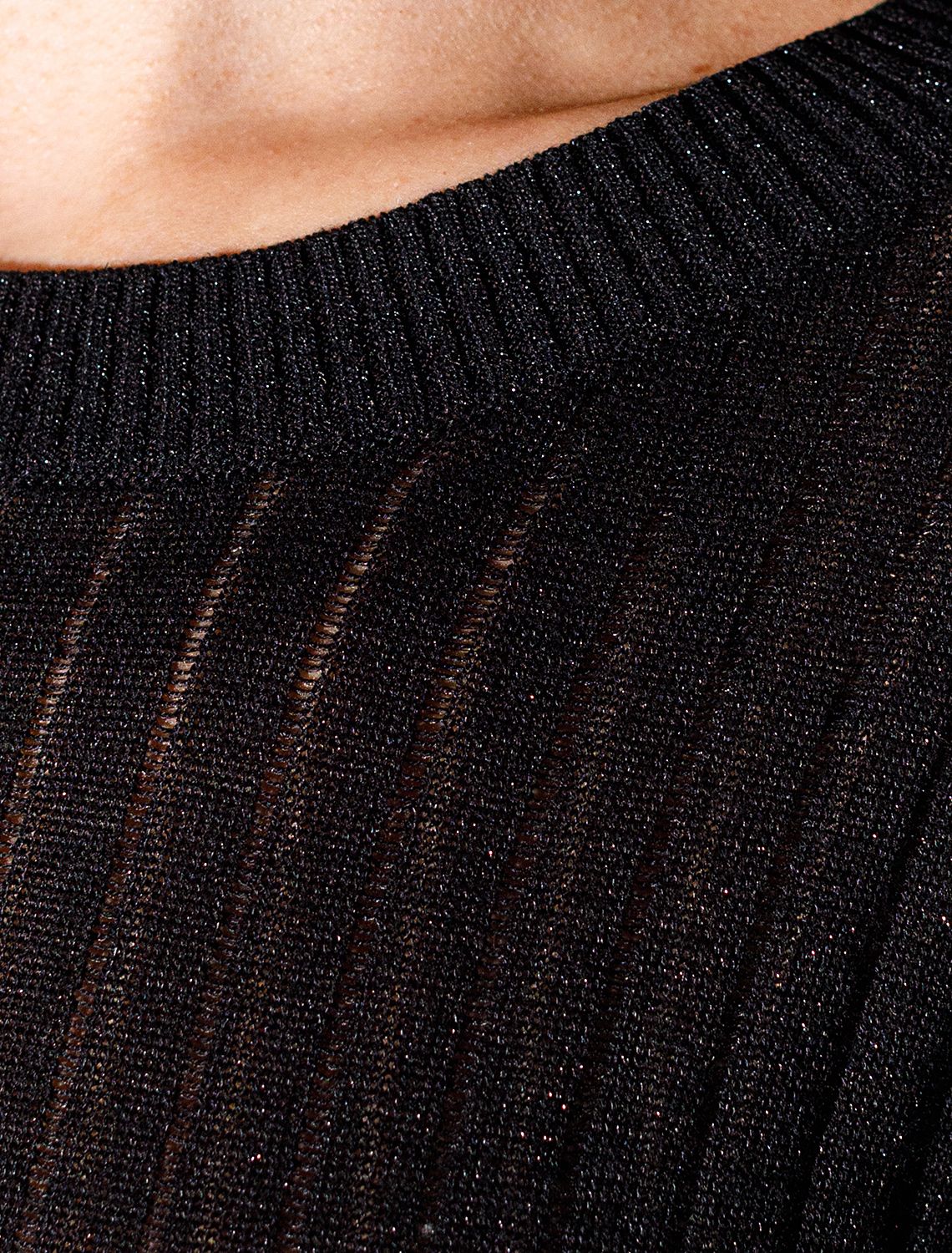 Джемпер легко сочетать с разными элементами гардероба для создания эффектных образов. Классический силуэт джемпера гармонирует в комплекте как с брюками, так и с юбками различных фасонов, легко впишется в деловой или повседневный стиль. Благодаря ненавязчивому блеску люрекса изделие смотрится стильно без излишней вычурности. черный