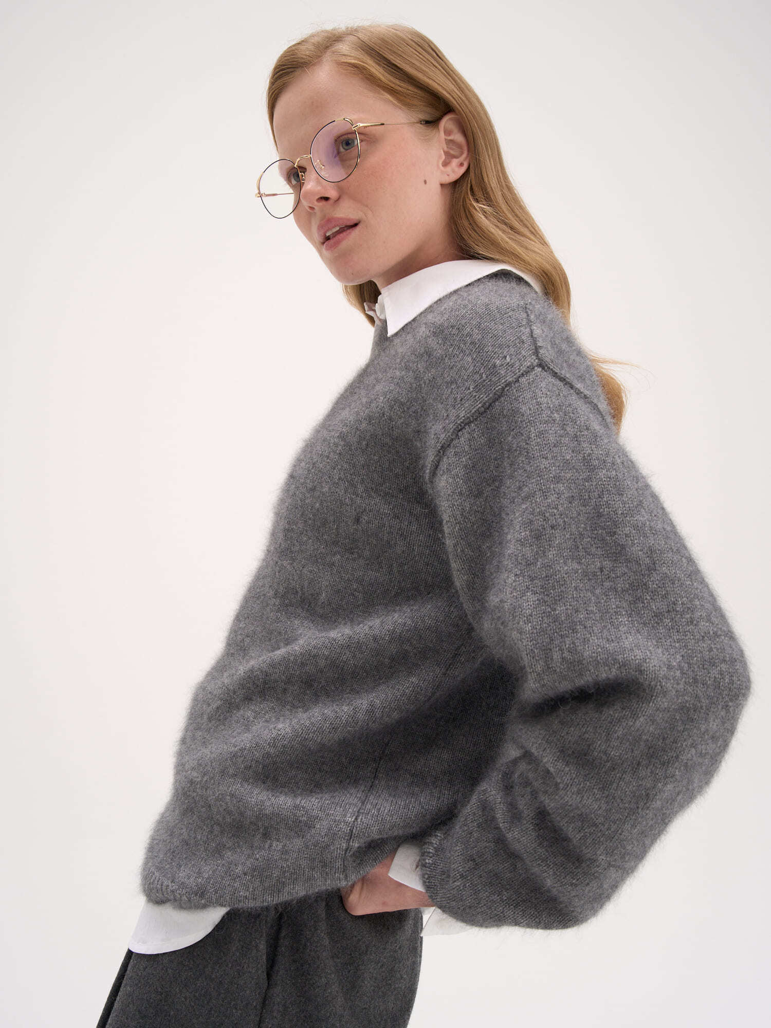 Джемпер с шерстью енота "Серый меланж" женский