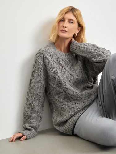 Джемпер с узорной вязкой из смесового хлопка, B2876/nuage