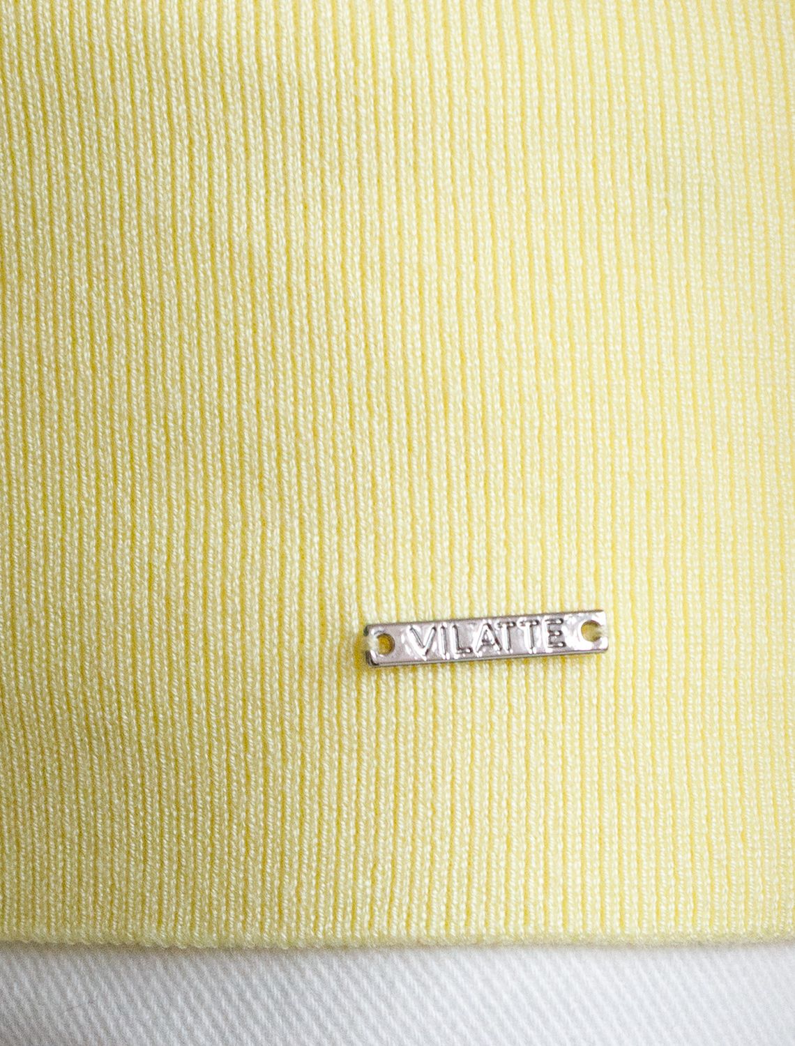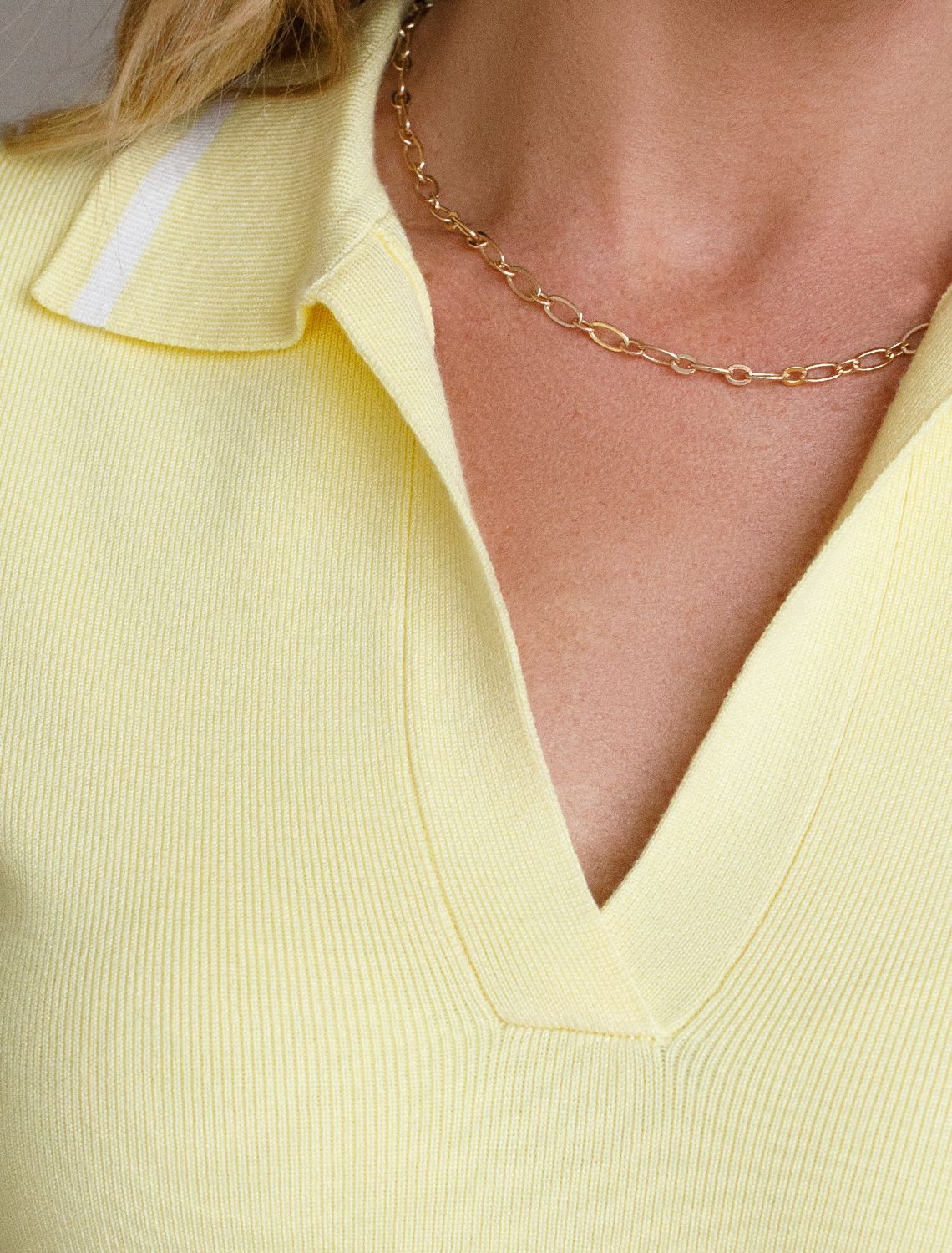 Джемпер с воротником-поло с коротким рукавом тонкой вязки из вискозы D39.389 лимонный