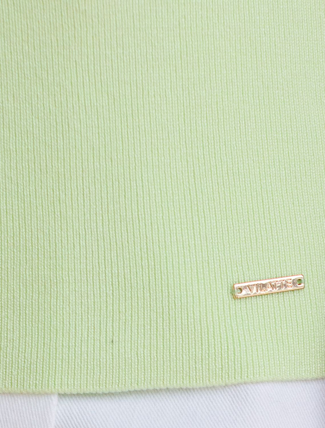 Легкий джемпер светло-зеленого цвета с V-вырезом и отложным воротником идеально подходит на весну и лето. Вязка в тонкий рубчик из вискозы дарит приятный комфорт и ощущение свежести в теплую погоду. Полуприлегающий крой подчеркивает силуэт, а универсальная длина позволяет сочетать джемпер с разными элементами гардероба. Контрастная отделка в виде тонких полосок добавляет стильный акцент, создавая выразительный образ. V-вырез подчеркивает зону декольте и визуально вытягивает шею, делая фигуру более изящной, а классический отложной воротник делает внешний вид более аккуратным и завершенным. Джемпер отлично смотрится на больших размерах благодаря продуманному крою и полуприлегающему фасону. Этот джемпер с коротким рукавом станет незаменимой частью гардероба в сезоны, когда хочется легкости и элегантности одновременно. Лаконичный дизайн обеспечивает простоту комбинирования с другими вещами и будет универсальной базой для создания разнообразных комплектов — от офисного до непринужденного городского стиля.