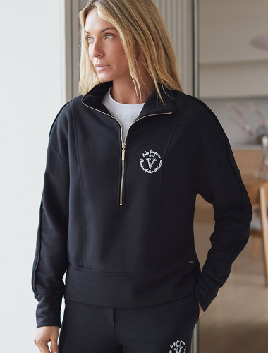 Джемпер с воротом на молнии из петельчатого футера трехнитки с эластаном D49.130 черный