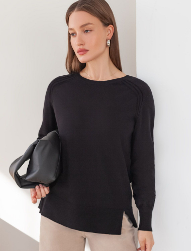 Джемпер тонкой вязки из хлопка с кашемиром D39.350 черный