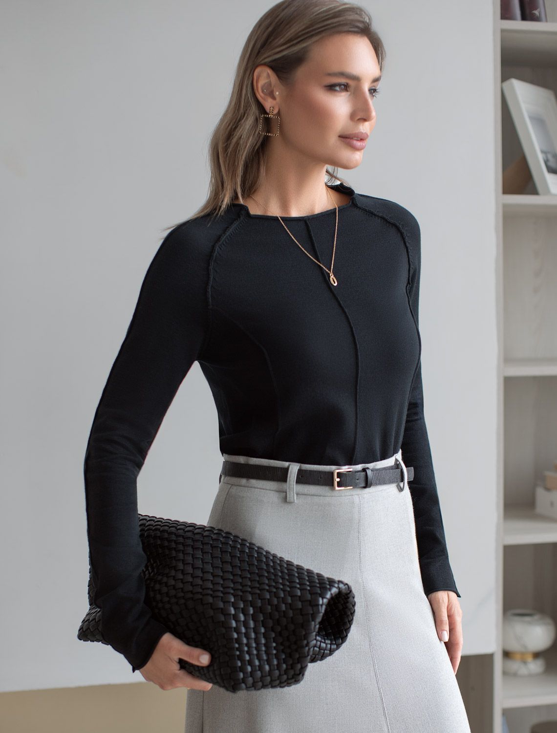 Джемпер тонкой вязки выполнен из мягкой хлопковой пряжи. Модель с декоративными швами идеально сидит по фигуре подчеркиваяч изгибы тела. Подходит для любой фигуры и впишется в любой гардероб. Изделие дополнено металлическим логотипом бренда.