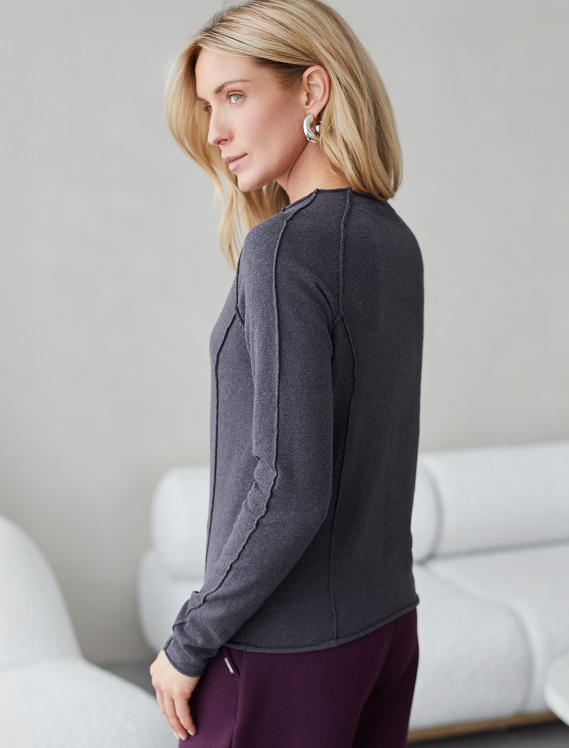 Джемпер тонкой вязки выполнен из мягкой хлопковой пряжи. Модель с декоративными швами идеально сидит по фигуре подчеркиваяч изгибы тела. Подходит для любой фигуры и впишется в любой гардероб. Изделие дополнено металлическим логотипом бренда.