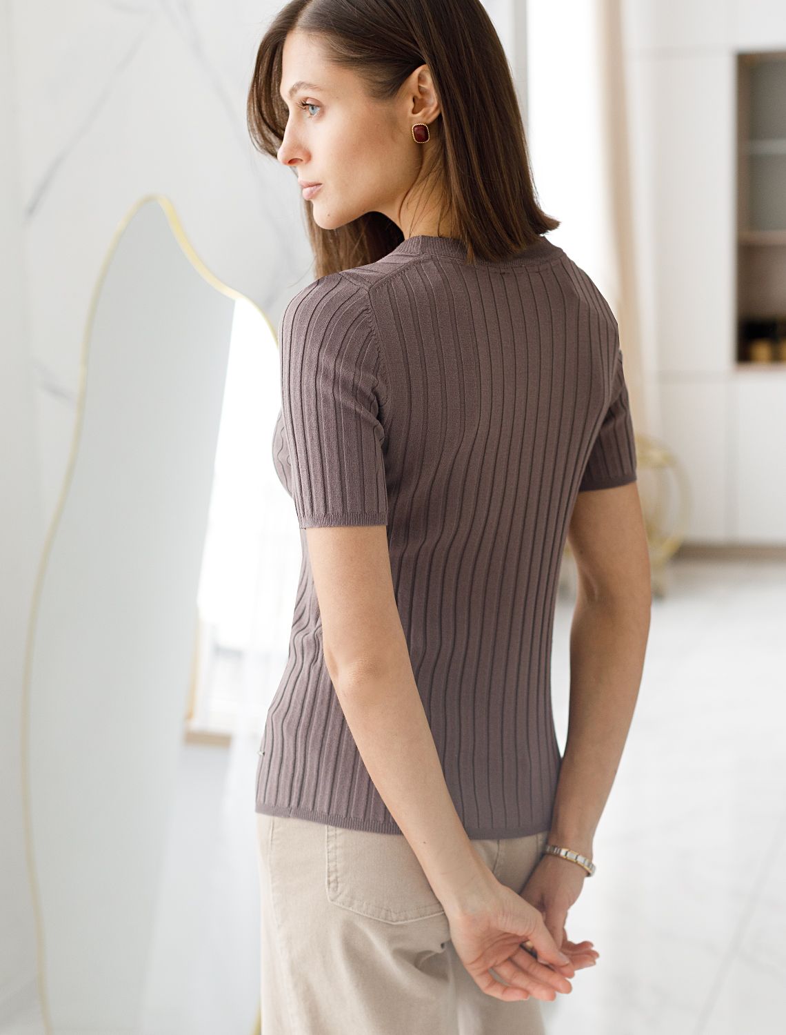 Джемпер тонкой вязки из вискозы с нейлоном D39.318 кофейный