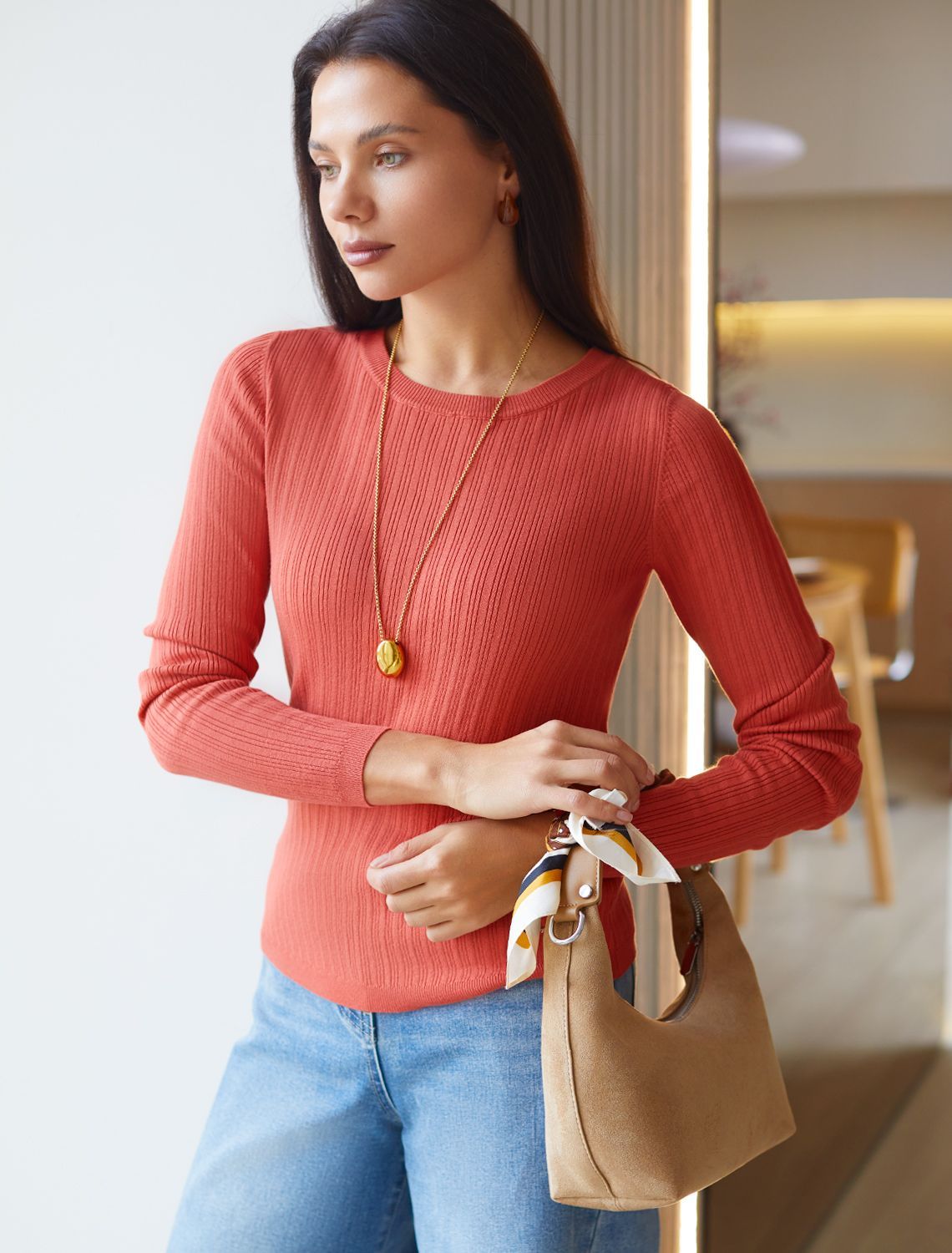 Джемпер тонкой вязки из вискозы с нейлоном D39.347 терракотовый