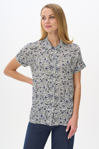 100% вискоза Блузка прямого силуэта из штапеля. Круглый вырез горловины, цельнокроеные короткие рукава. По низу изделия в боковых швах разрезы. Рост модели на фото 175 см.