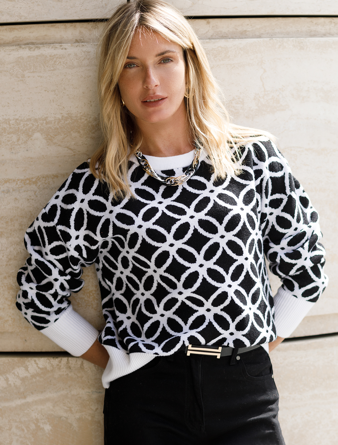 Джемпер жаккардовой вязки выполнен из мягкой пряжи на основе вискозы с добавлением кашемира. Очень приятная на ощупь пряжа дарит абсолютный комфорт, сохраняя оптимальную температуру не перегревая. Совет стилиста: модель с круглым вырезом и спущенной линией плеч гармонично дополнит повседневные образы с джинсами или брюками, при этом будет также выигрышно сочетаться с юбкой в заправку. 50%Вис 20%ПА 20%ПЭ 10%Кашемир