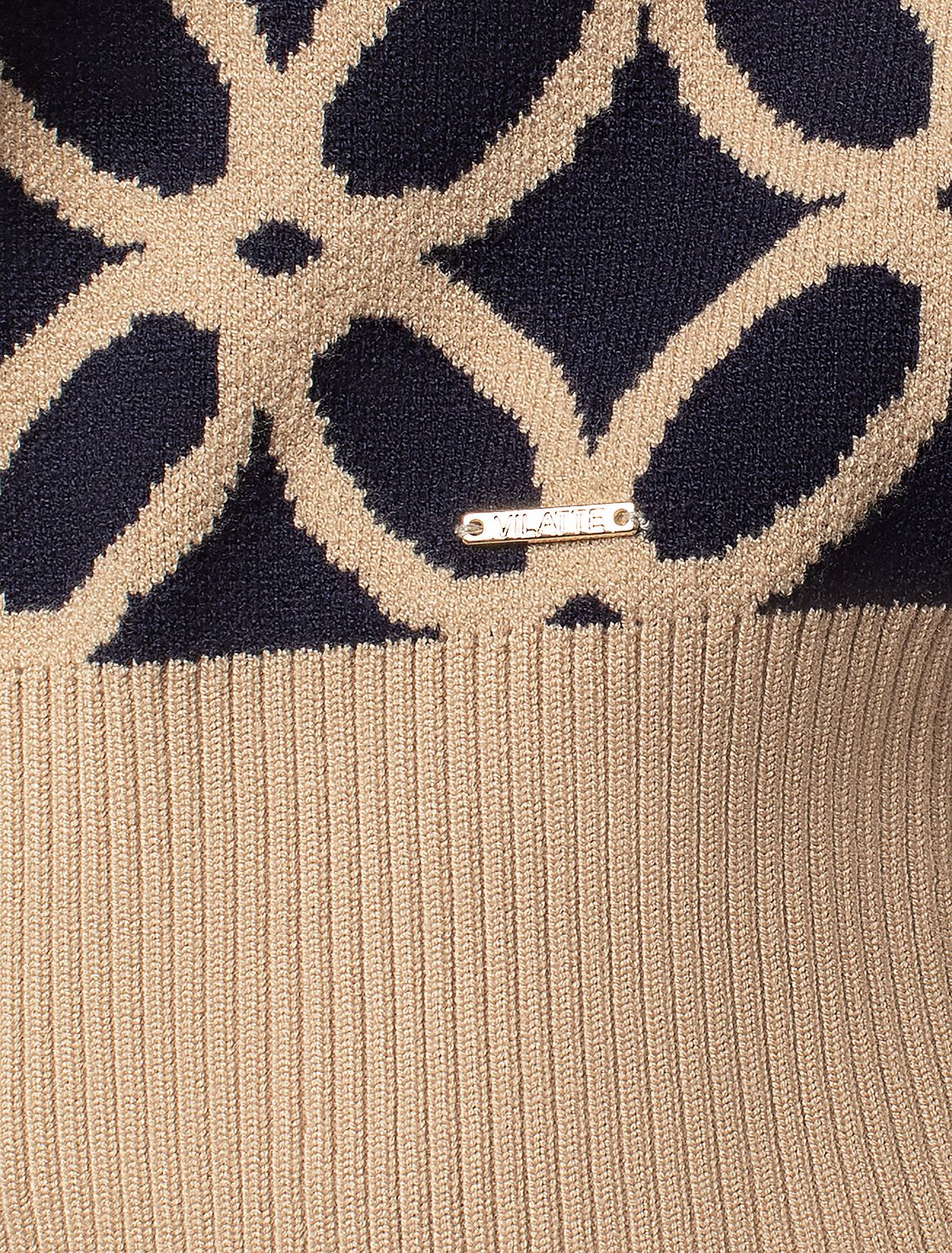 Джемпер жаккардовой вязки выполнен из мягкой пряжи на основе вискозы с добавлением кашемира. Очень приятная на ощупь пряжа дарит абсолютный комфорт, сохраняя оптимальную температуру не перегревая. Совет стилиста: модель с круглым вырезом и спущенной линией плеч гармонично дополнит повседневные образы с джинсами или брюками, при этом будет также выигрышно сочетаться с юбкой в заправку. синий-бежевый