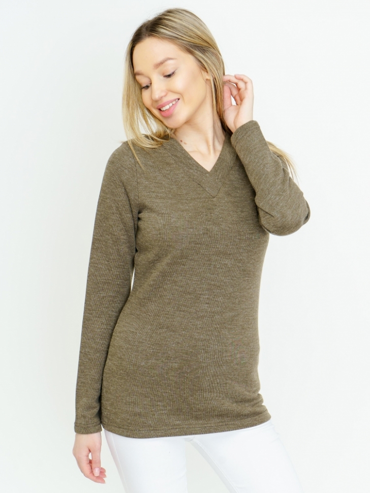 Джемпер женский прилегающего силуэта с V-образным вырезом горловины. Рост модели на фото 170 см. Параметры модели: 86-63-92. Размер изделия на модели: 42. Размер - Длина изделия по спинке (см): 42 - 64; 44 - 64,5; 46 - 65; 48 - 65,5; 50 - 66; 52 - 66,5; 54 - 67. Материал: ангора двухсторонняя ( п/э 95%, лайкра 5% ).