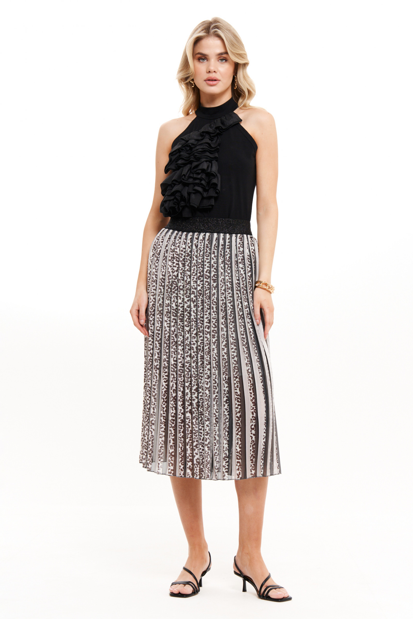 Женский джемпер – идеальный выбор для стильных и уверенных в себе девушек, которые ценят комфорт и элегантность. Эта модель сочетает в себе классический крой и современные детали, делая ее универсальной для повседневных, офисных и нарядных образов. Джемпер выполнен из качественной поливискозной ткани, которая приятна к телу и отлично пропускает воздух, что делает его незаменимым в летний и весенний сезоны. Полуприлегающий силуэт подчеркивает фигуру, а декоративные рюши на передней части добавляют женственности и утонченности.