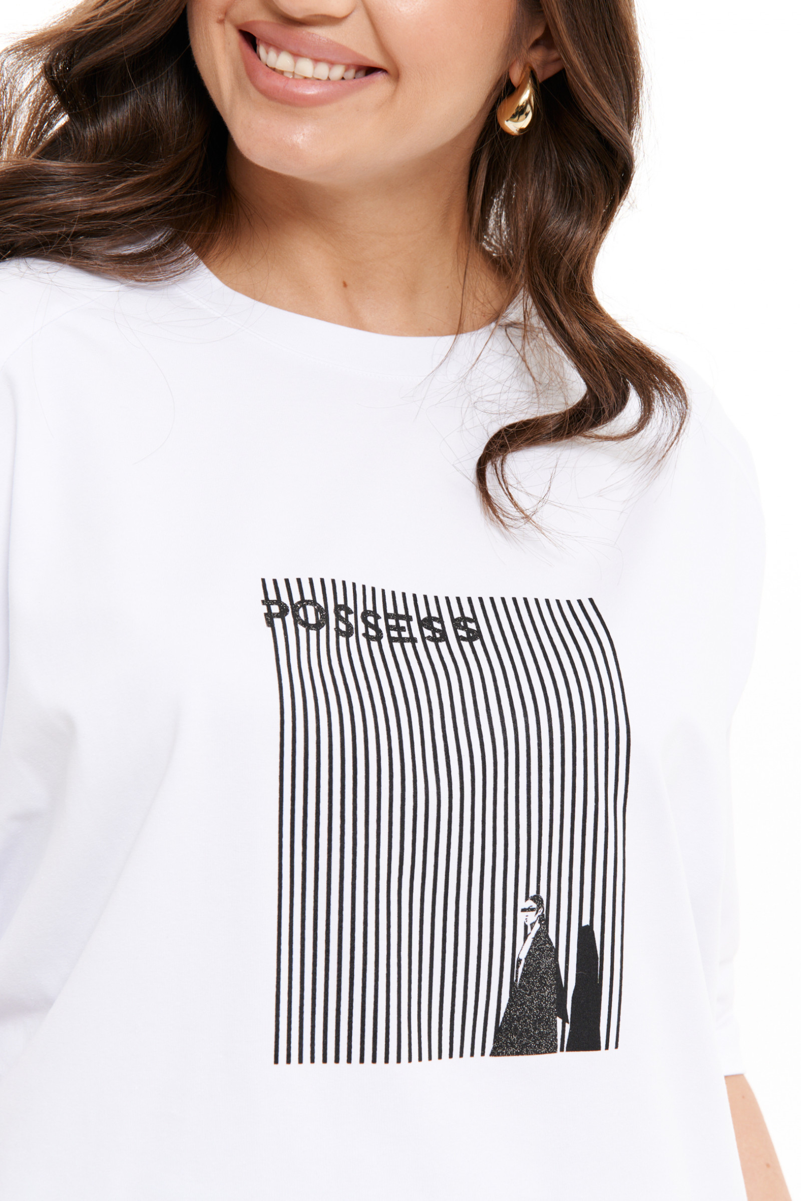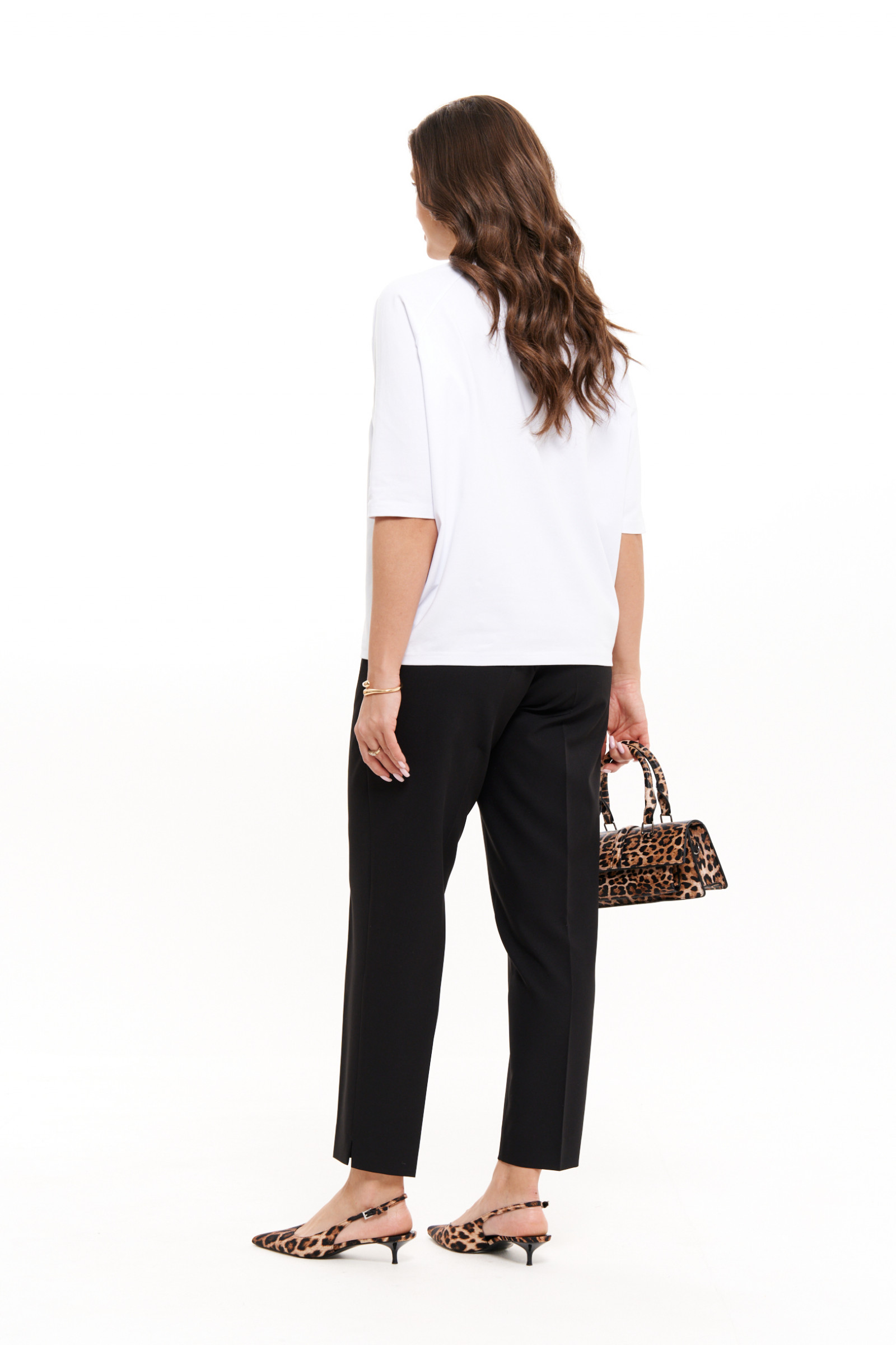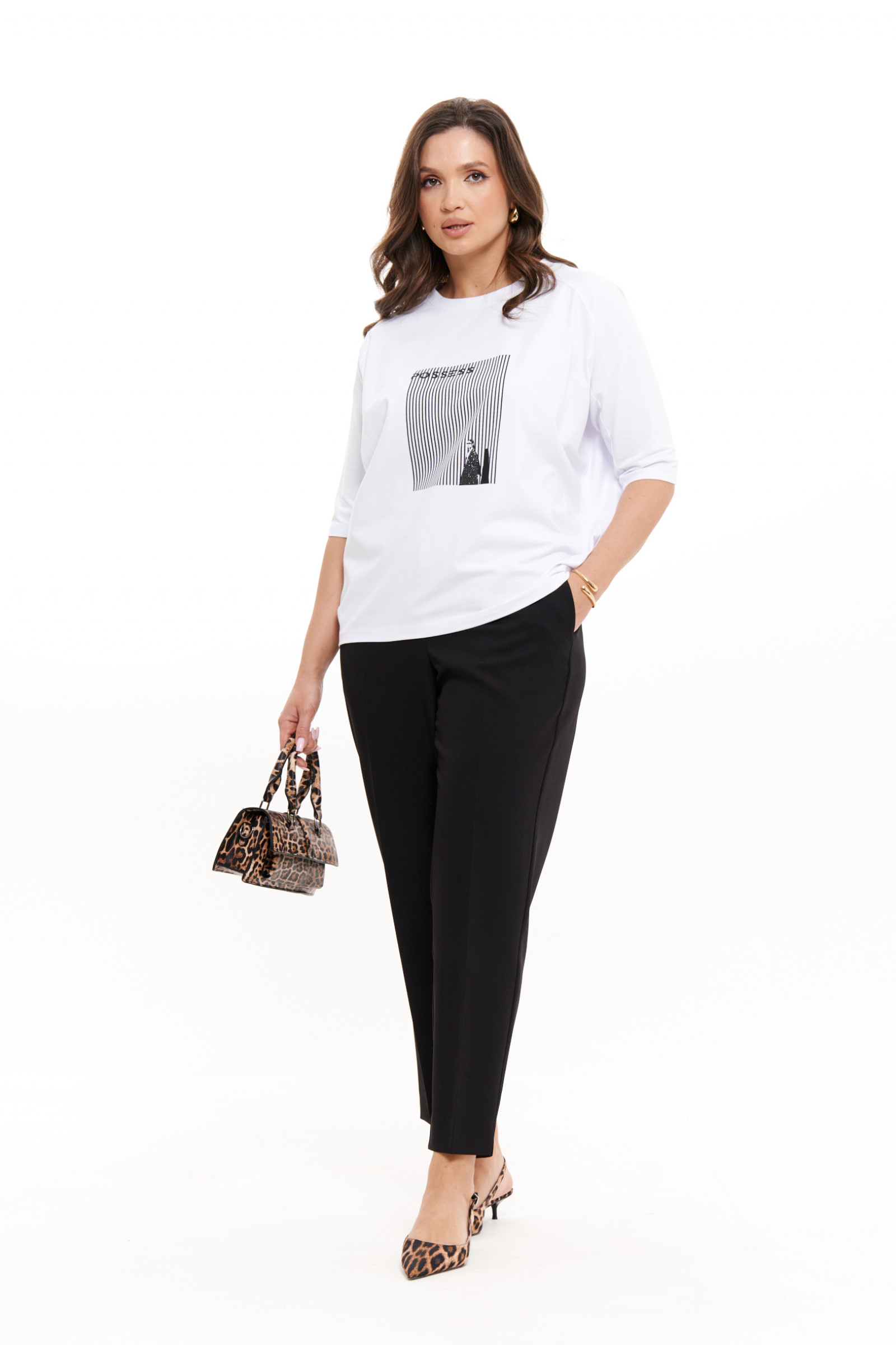 Женский джемпер из мягкого хлопкового трикотажа — идеальный выбор для тех, кто ценит комфорт и стиль в одном образе. Свободное классическое исполнение делает его универсальным решением для повседневного, офисного и даже делового гардероба. Модель прямого силуэта дополнена модной дизайнерской аппликацией в виде лаконичных букв на передней части, что придаёт изделию нарядный и современный акцент. Джемпер женский выполнен в базовом белом оттенке, который гармонично сочетается с любой одеждой — от джинсов до строгих брюк или юбок. Легкие разрезы по бокам обеспечивают дополнительный комфорт при движении, а слегка расширенная горловина с аккуратной отделкой и рукава реглан длиной чуть ниже локтя подчеркивают женственность силуэта. Такой джемпер особенно актуален в летний и весенний сезоны, когда хочется чувствовать лёгкость, оставаясь при этом в рамках делового стиля. Его можно носить на работу в офис, на прогулку в городе или использовать в качестве стильной базы под жакет. Благодаря свободному крою он подходит для любого типа фигуры, выгодно подчеркивая достоинства. Джемпер женский станет прекрасным решением для тех, кто ищет базовый, но при этом выразительный элемент гардероба. Его повседневный и офисный характер делает его универсальным выбором для женщин, стремящихся выглядеть стильно в любой ситуации, будь то деловая встреча, рабочий день или встреча с друзьями. Уникальный дизайн позволит вам почувствовать себя уверенно и привлечь внимание благодаря тонкому чувству стиля.