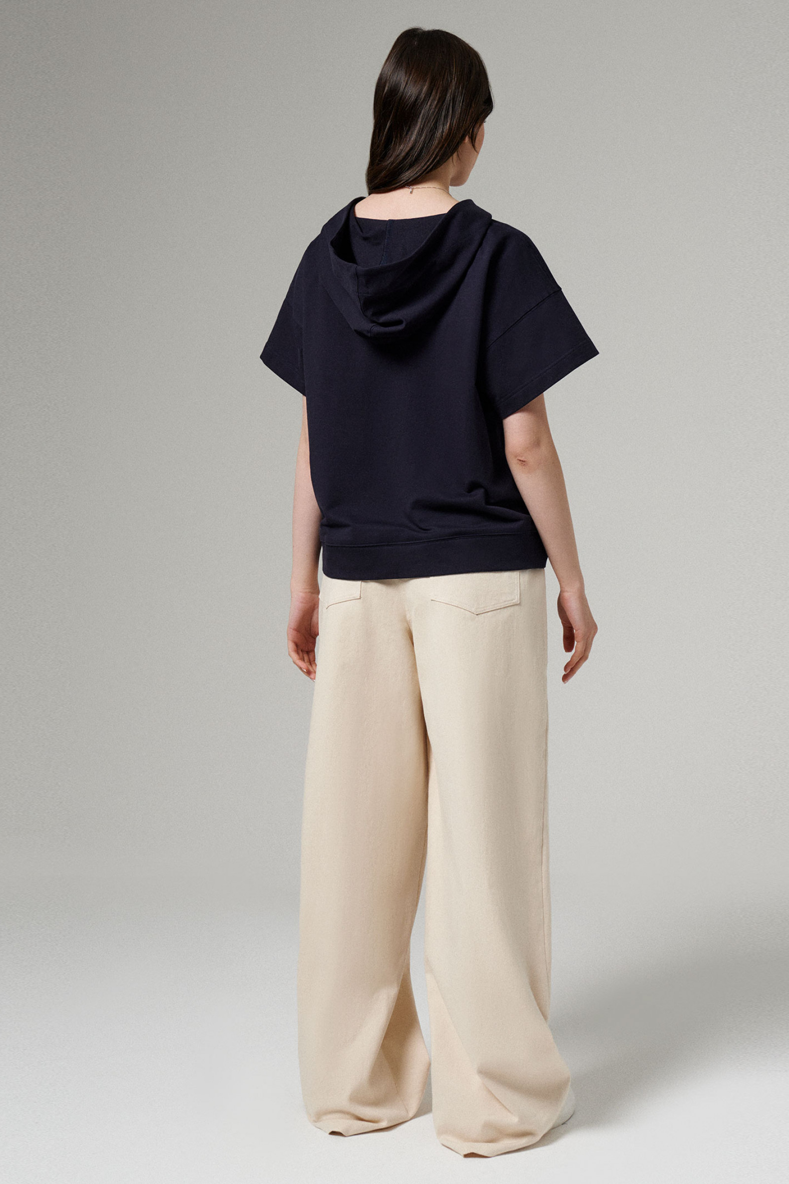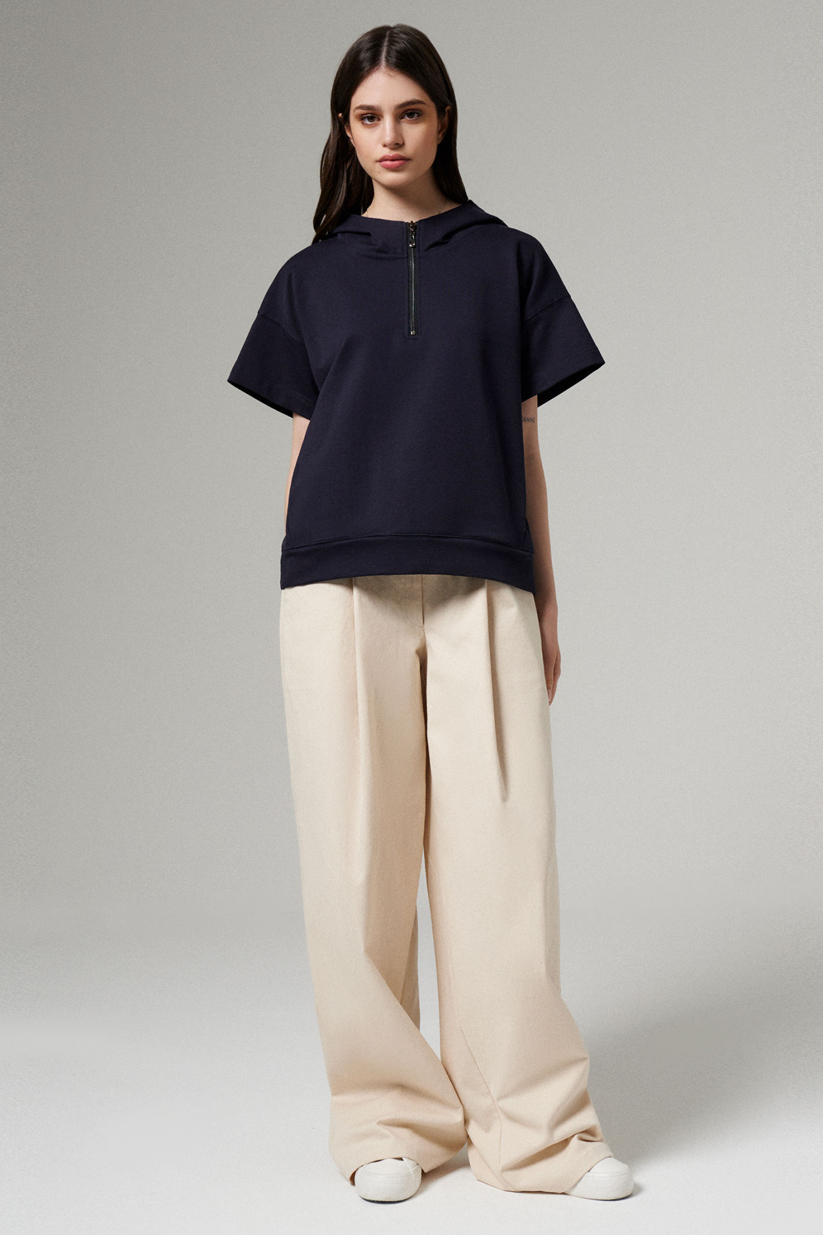 Оригинальный джемпер женский уместно дополнит образ в спортивном стиле. Свободный крой дарит комфорт в любой ситуации – во время активных игр, тренировок, занятий спортом, отдыха на природе. Выполнен джемпер с коротким рукавом, впереди имеется молния. Она выполняет одновременно декоративную и функциональную роль. Благодаря большому содержанию в его составе хлопка, легкий джемпер женский очень легкий, хорошо пропускает воздух, не даем телу спариваться во время физических нагрузок. Вы можете купить трикотажный джемпер летний женский в размерах 42-50 и сочетать его с юбкой в аналогичном стиле.