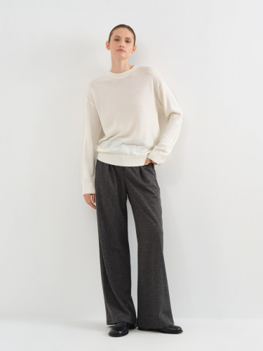 Этот базовый джемпер идеален для офиса, прогулок и других ежедневных дел. Выполнили его в лаконичном дизайне и универсальных цветах, поэтому у вас не будет проблем со стилизацией. Прямой свободный силуэт со спущенной линией плеча обрамлен манжетами и резинкой по низу, что позволяет избежать размывания образа. Смесовый трикотаж с добавлением отборной шерсти согревает, дарит особую мягкость и создает красивый визуал.