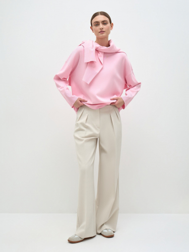 Базовый джемпер – это всегда масса вариантов стилизации, например, под жакет, с трикотажными брюками в стиле спорт-шик или джинсовой юбкой. В любом случае вам будет максимально комфортно – модель выполнена в свободном силуэте из тонкого гладкого полотна на основе вискозы. Круглый вырез, низ и манжеты окантованы эластичной резинкой для оптимальной посадки.