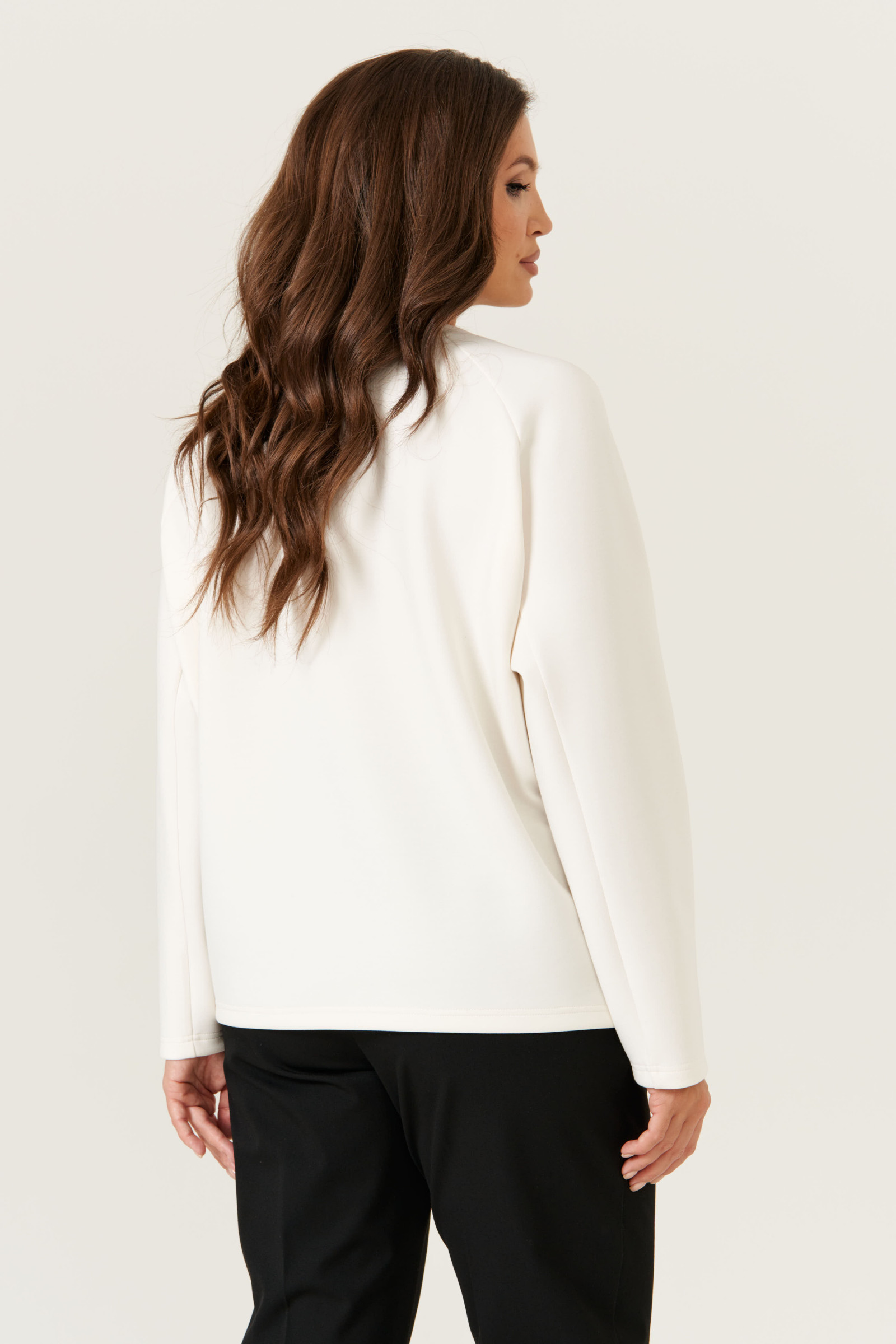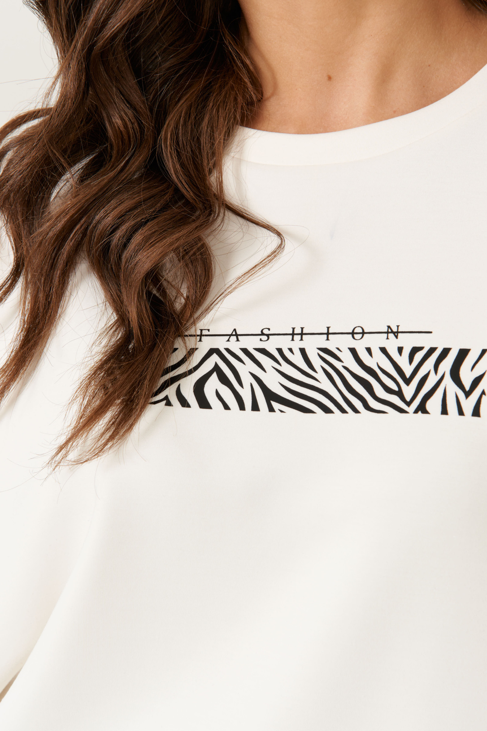 Этот женский джемпер выполнен из мягкого и приятного трикотажа, который обеспечивает комфорт в носке. Модель прямого силуэта подходит для разных типов фигуры и отлично сочетается с различными образами. Перед украшен дизайнерской печатью с интересным принтом и надписью, что придает изделию индивидуальность и стиль. Горловина чуть расширенная, обработана притачной тесьмой, что добавляет аккуратности и завершенности образу. Длинные рукава реглан обеспечивают свободу движений и комфорт. Классическая длина делает этот джемпер универсальным элементом гардероба. Молочный оттенок легко сочетается с разными цветами и стилями, а его идеальная посадка подчеркнет вашу фигуру и привлечет восхищенные взгляды окружающих.