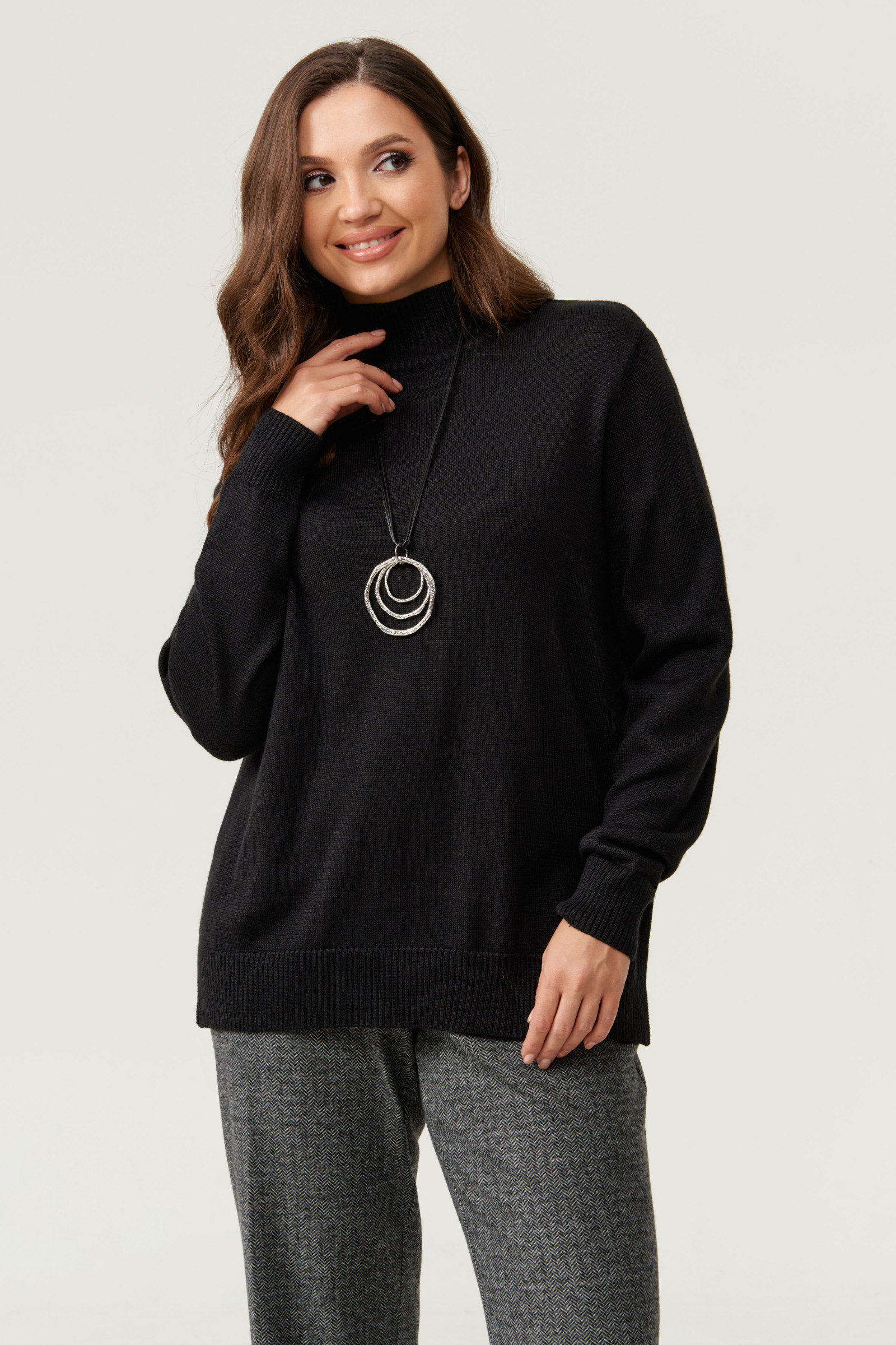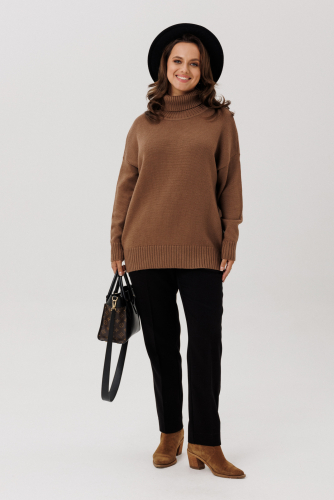 Женский гольф - универсальный тренд на сезон осень, зима и весна! Мягкий теплый базовый джемпер со стоечкой из шерстяной пряжи идеально впишется в гардероб каждой женщины, а также подойдет и для подростков. По низу изделия по бокам выполнены небольшие разрезы. Свитер имеет свободную посадку и подходит также для больших размеров. При правильном уходе вязаный свитер не теряет форму и не растягивается.
