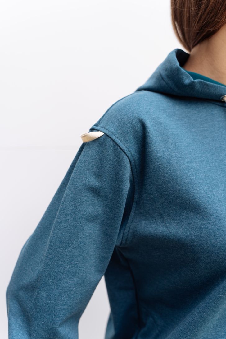 Материал: Хлопок 95%, Эластан 5%Женский джемпер с капюшоном из мягкого футера, с боку принт. По низу изделия в боковых швах завязки, капюшон со шнурком. Идеально подходит для создания стильного и уютного образа в повседневной жизни. Темно-бирюзовый