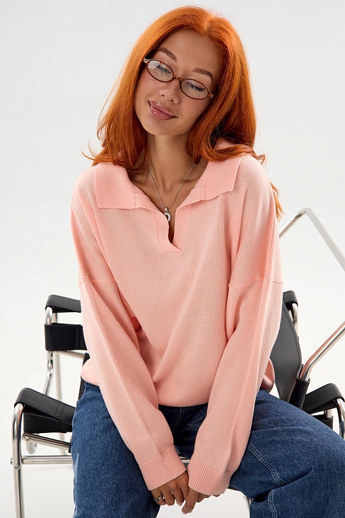 Классический, строгий женский джемпер Феникс. Универсальная модель с отложным воротничком, длинными рукавами с манжетами. Удобный и практичный джемпер на каждый день в холодное время года.