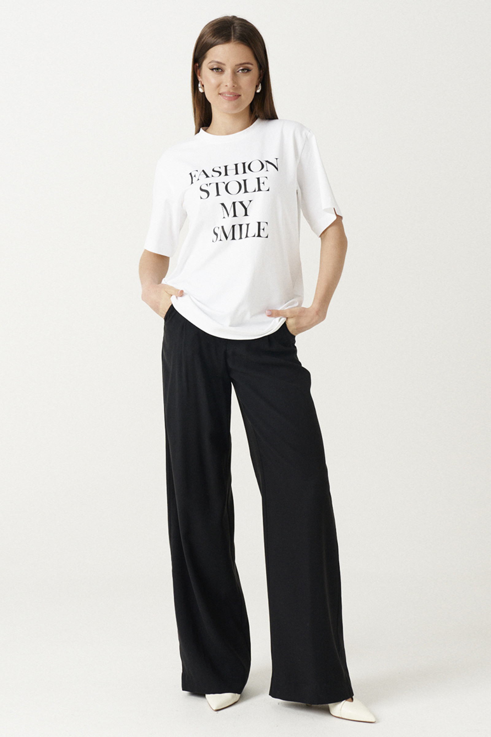 Базовая футболка бренда Ketty из высококачественного хлопкового трикотажа. Модель имеет свободную посадку. Декор в виде печати придаст джемперу неповторимость. Рукав короткий, свободный. Горловина круглая, обработана притачной планочкой. Наша футболка свободного кроя подойдет для любой фигуры, как для высоких, так и для девушек и женщин среднего роста, под любой образ и стиль. Крой футболки - свободный, модный, легкий оверсайз - очень модно и стильно. Футболку с вышивкой можно носить с любой одеждой - джинсами, юбкой, костюмом. Прямой крой и дышащий материал делают её удобной и комфортной для повседневной носки, для поездок и для прогулок! Подойдёт как в офис, так и как элемент вечернего гардероба!