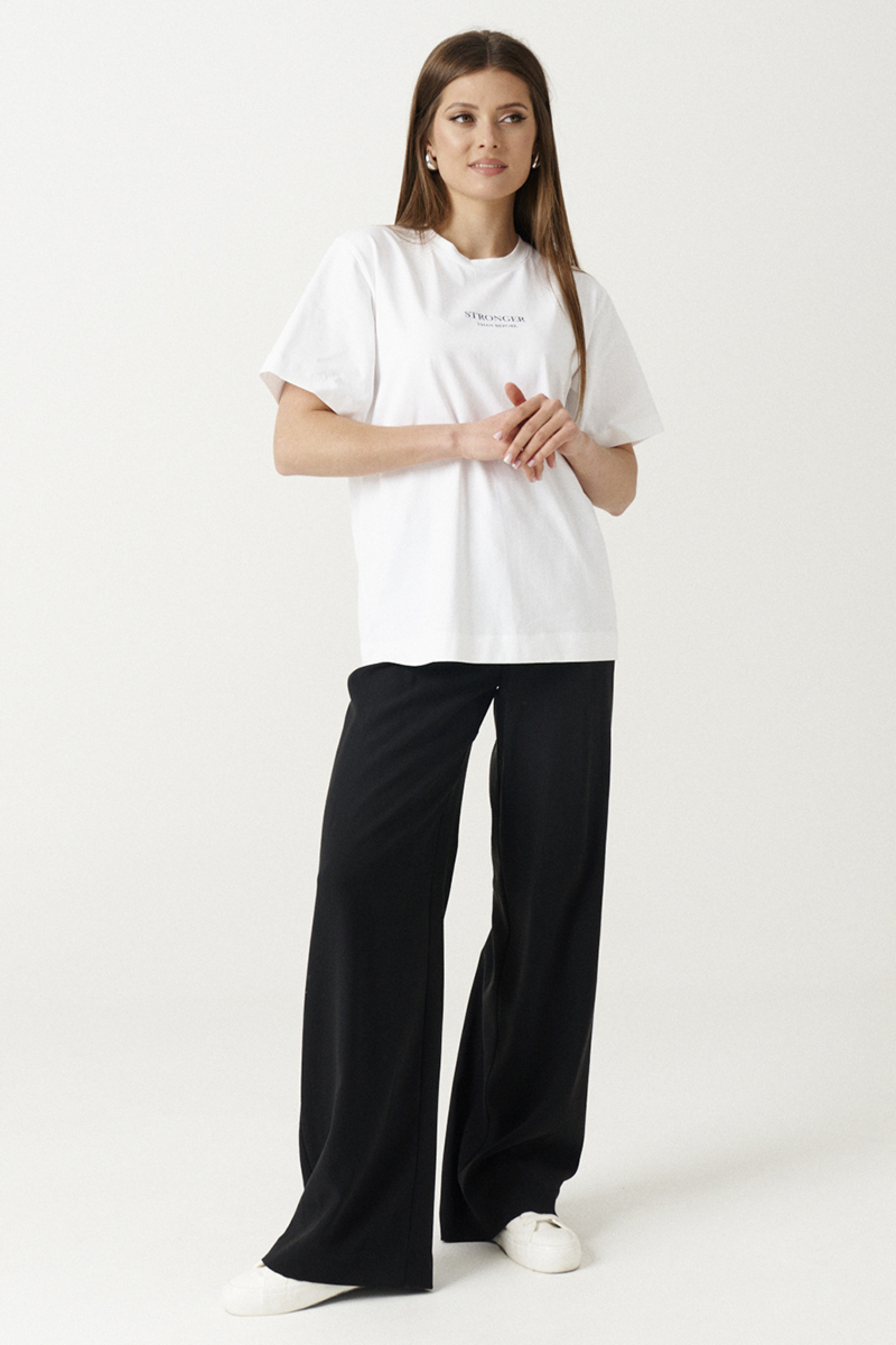 Базовая футболка бренда Ketty из высококачественного хлопкового трикотажа. Модель имеет свободную посадку. Декор в виде печати придаст джемперу неповторимость. Рукав короткий, свободный. Горловина круглая, обработана притачной планочкой. Наша футболка свободного кроя подойдет для любой фигуры, как для высоких, так и для девушек и женщин среднего роста, под любой образ и стиль. Крой футболки - свободный, модный, легкий оверсайз - очень модно и стильно. Футболку с вышивкой можно носить с любой одеждой - джинсами, юбкой, костюмом. Прямой крой и дышащий материал делают её удобной и комфортной для повседневной носки, для поездок и для прогулок! Подойдёт как в офис, так и как элемент вечернего гардероба!