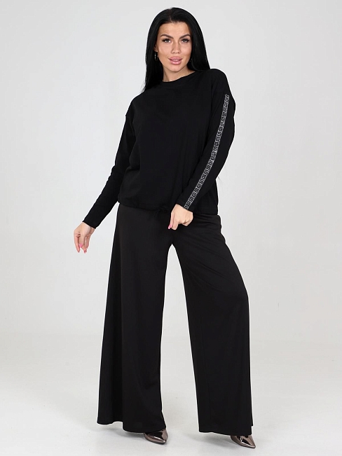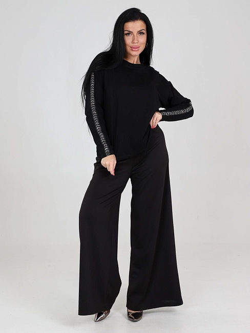 Базовый джемпер с длинными рукавами, на рукавах декоративные элементы из страз.