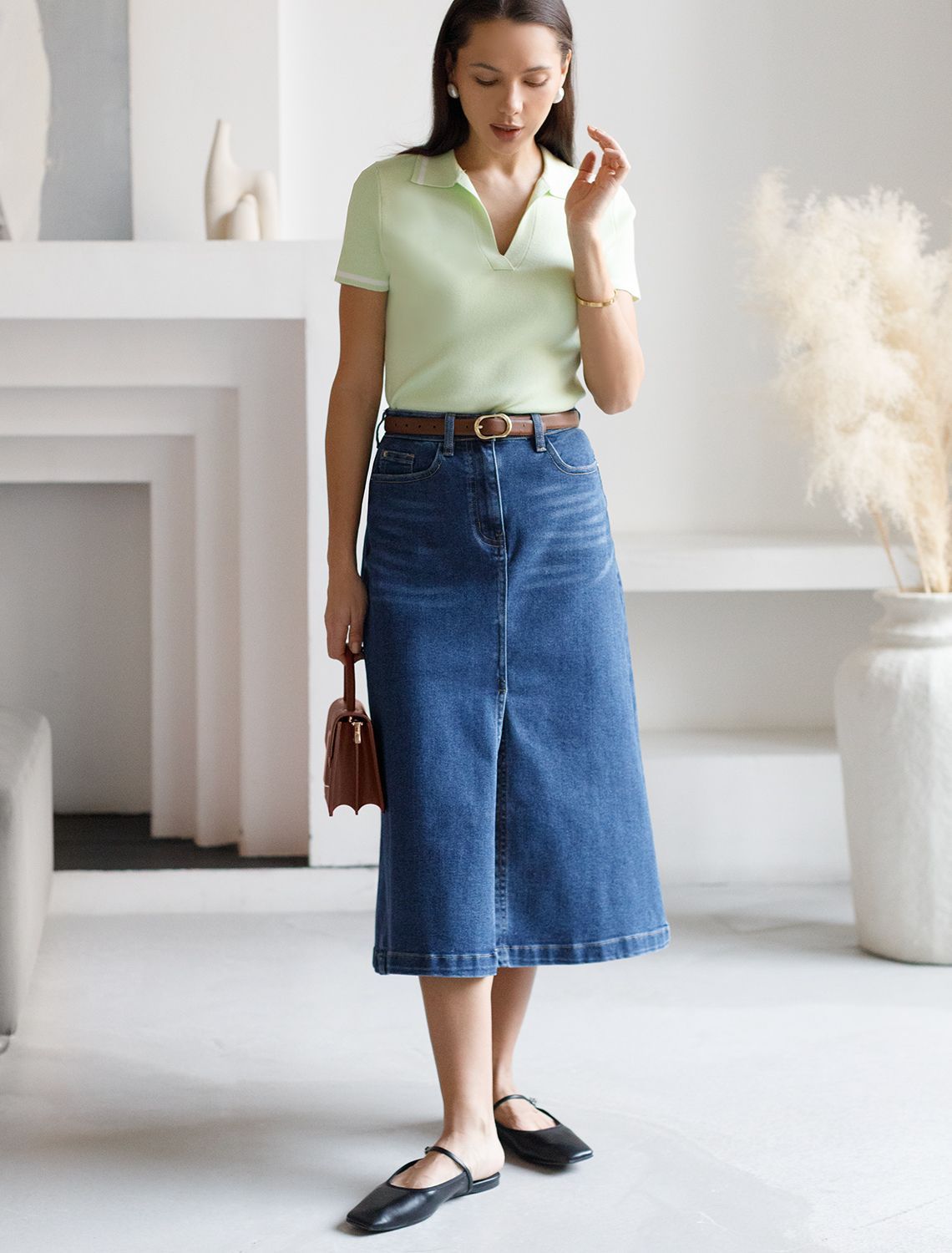 Классический силуэт, плотное облегание по бедрам. Спереди разрез-шлица.