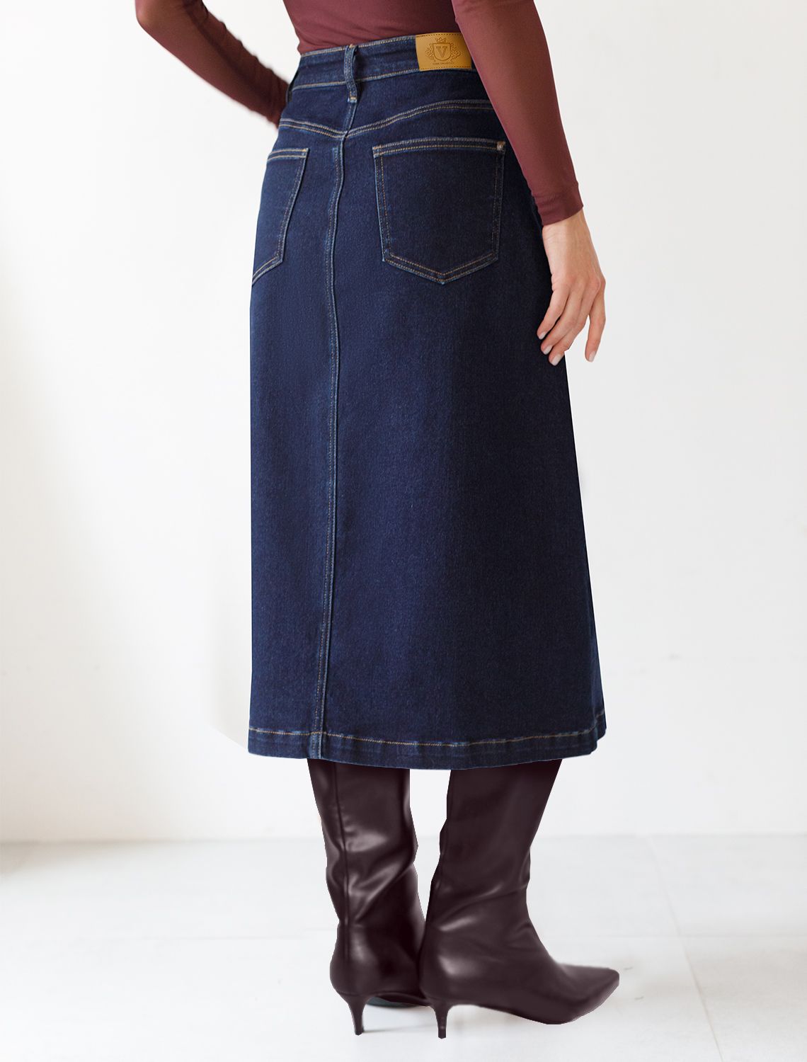 Ст.цена 2450р Джинсовая юбка из плотной эластичной джинсы 13.8OZ. D56.122 темно-синий