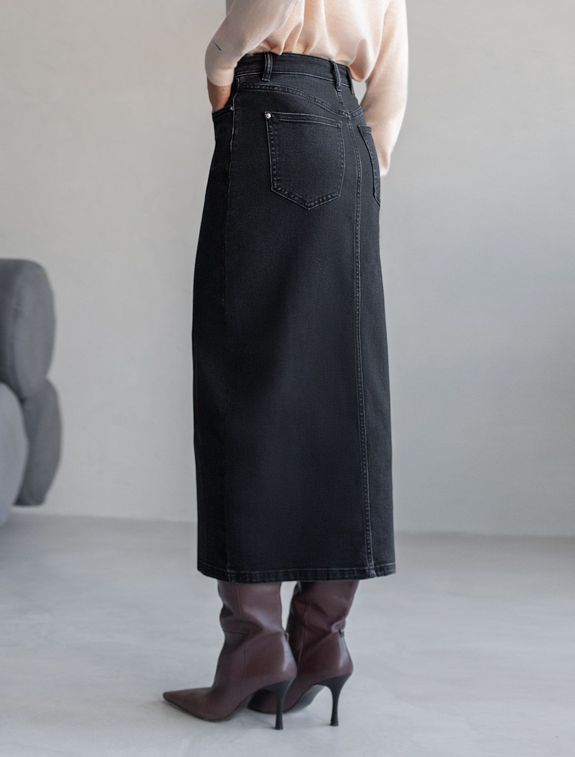 Джинсовая юбка из плотной эластичной джинсы 13OZ. D56.124 черный