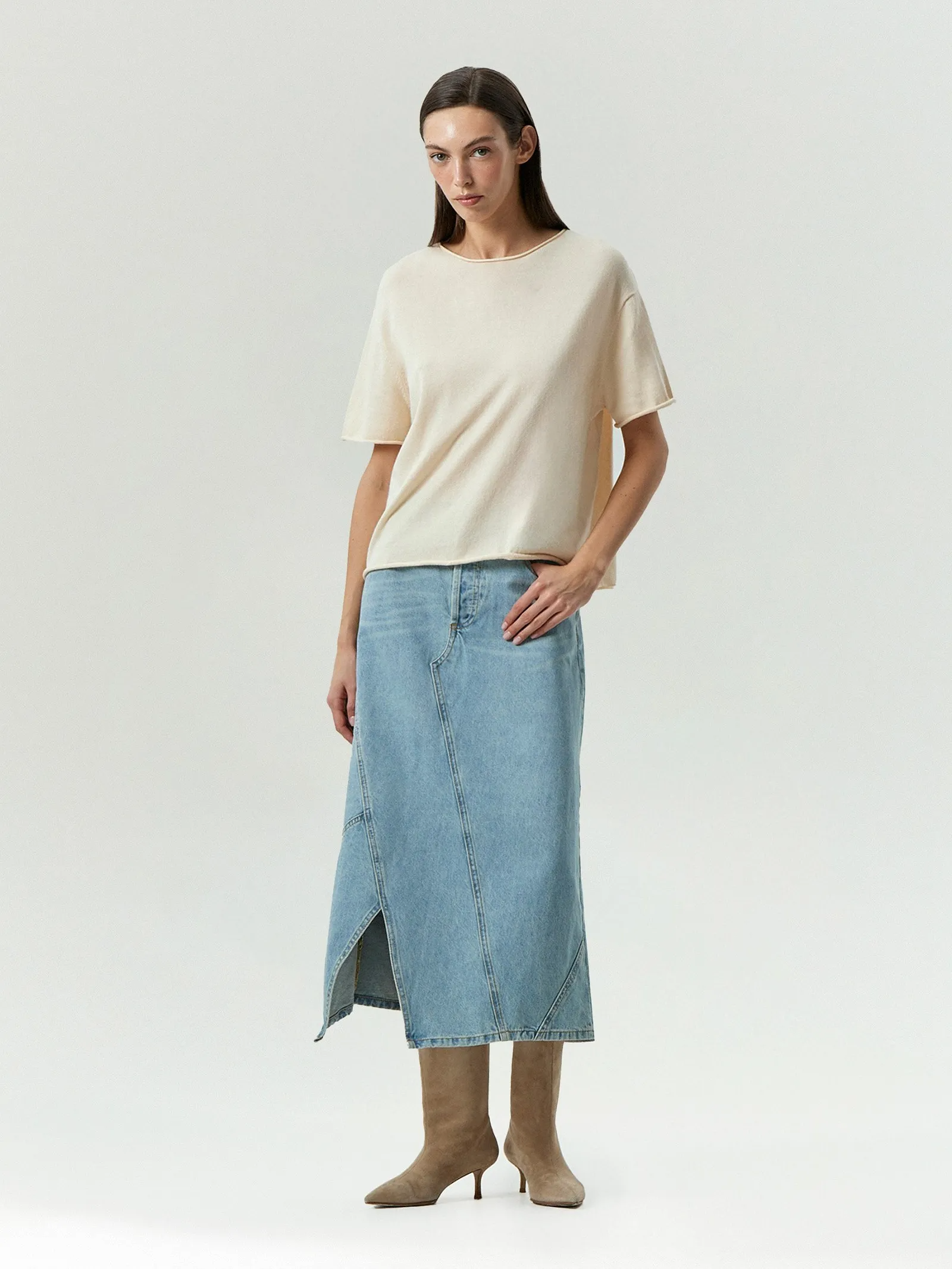 Джинсовая юбка миди косого кроя, S1109/turien