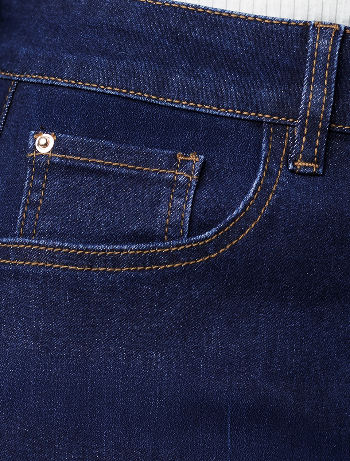 Свободные джинсовые бермуды насыщенного темно-синего цвета из эластичного денима обеспечивают комфорт и стиль в повседневном образе. Длинные классические шорты с пятью карманами выполнены с широким подгибом по низу и со стрелками по всей длине, что эффектно удлиняет ноги и визуально стройнит силуэт. Правильная посадка и классический фасон подходит как для маленьких, так и для больших размеров. Материал эластичен, благодаря чему шорты отлично садятся по фигуре и не сковывают движения, обеспечивает долговечность изделия, сохраняя первоначальный вид даже после многократных стирок и активного использования. Шорты дополнены качественной фуртитурой и брендированным патчем из эко-кожи на поясе.