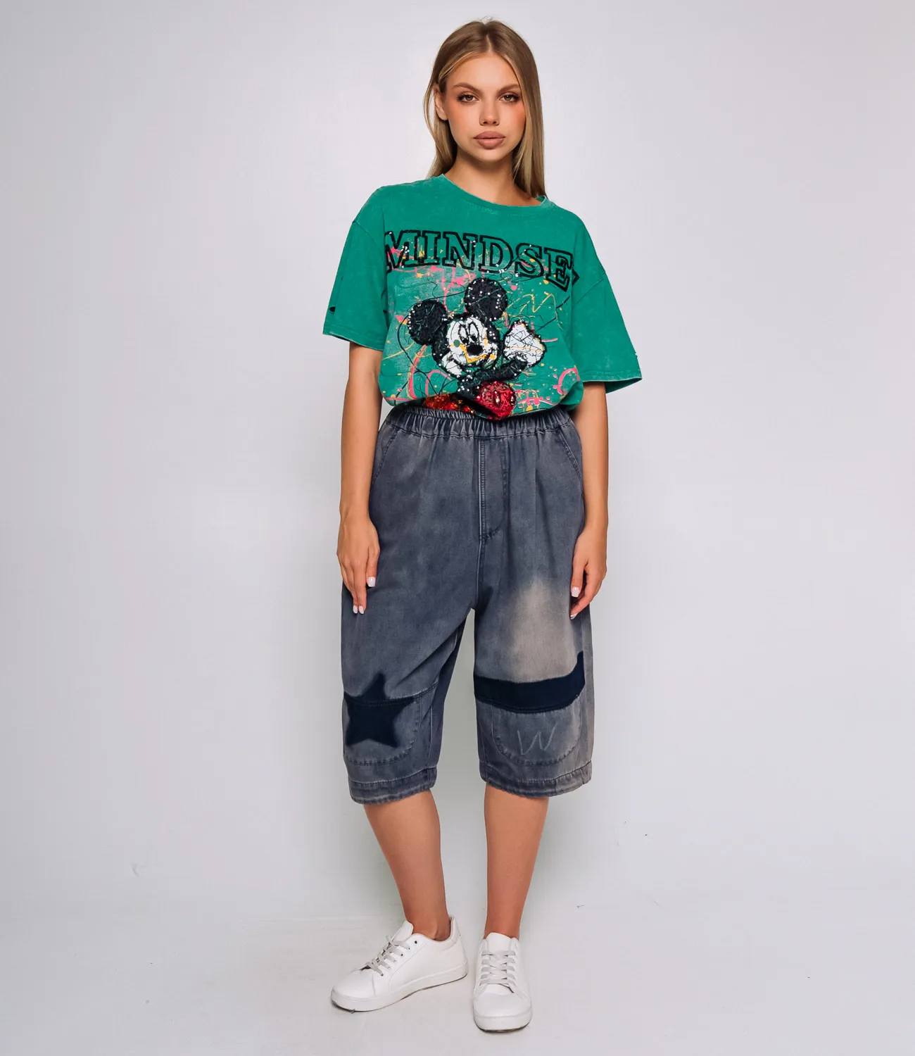 Шорты — это незаменимая часть гардероба современной женщины, способная добавить в любой образ нотки стиля и комфорта. Эти шорты выполнены из высококачественного материала, состоящего из 68,5% хлопка, 27,3% полиэстера и 4,2% вискозы, что обеспечивает отличную воздухопроницаемость и удобство в носке, а также хорошую износостойкость. Модель имеет свободный фасон с высокой эластичной талией, что обеспечивает идеальную посадку и комфорт на протяжении всего дня. Это позволяет вашим покупательницам ощущать себя уверенно и стильно в любой ситуации. Дизайн шорт украшен контрастными вставками и оригинальными декоративными элементами — звёздой и буквой "W" на передних карманах — что придает изделию уникальность и выразительность. Низ изделия слегка присборен и выполнен с двойной строчкой, что не только добавляет завершающий штрих к общему стилю, но и придаёт шортам современный, модный вид. Эти шорты прекрасно вписываются в повседневные образы и идеально подходят для теплых дней. Обратите внимание на разнообразие цветовых решений, которые полностью соответствуют фотографиям на нашем сайте. Мы также подготовили таблицу размеров, чтобы каждая покупательница могла легко подобрать свой идеальный вариант. Предложенная вами цена является доступной для оптовых покупателей, что даёт отличную возможность для увеличения ассортимента вашего магазина. Добавьте эти стильные шорты в свои коллекции и обеспечьте вашим клиенткам возможность выглядеть стильно и комфортно в любой ситуации! Подарите им шанс выделяться из толпы в летний период! Рост модели 168 см., 89-63-90.