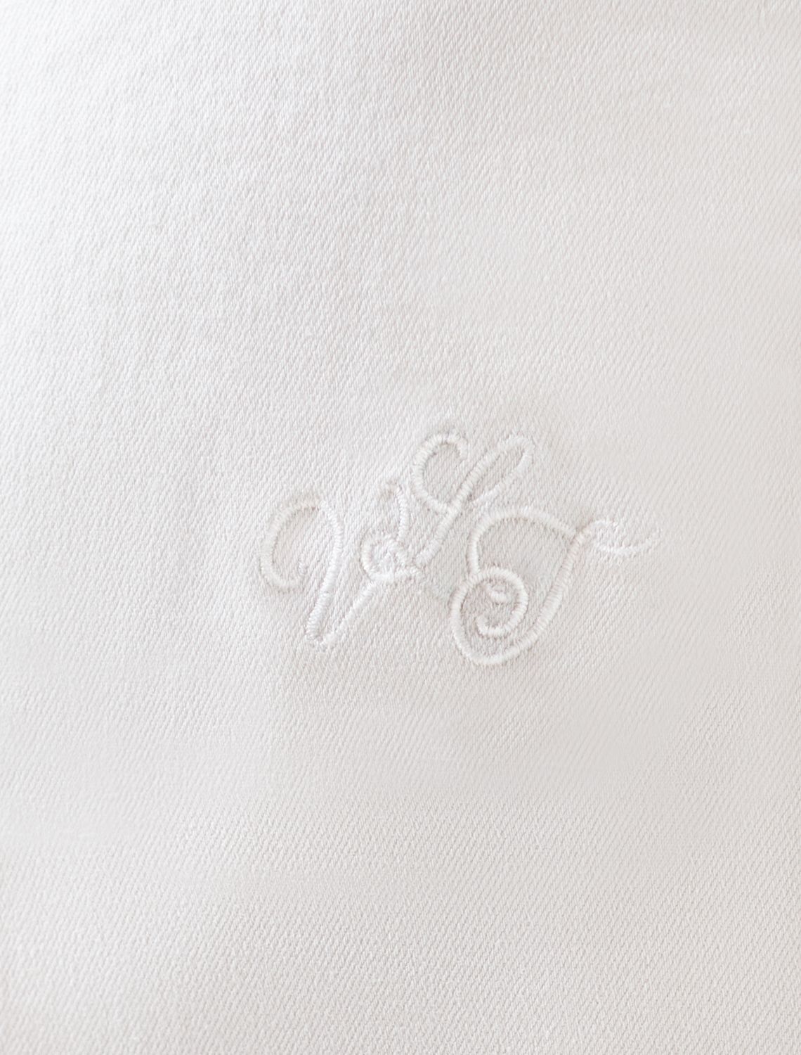 Свободный стильный бомбер белого цвета из эластичного денима средней плотности 11 OZ. На передней части бомбера выполнена вышивка по авторскому эскизу дизайнера — буквы V L T, оформленные вензельным шрифтом. Сама вышивка выполнена техникой «застил» машинным способом. Этот удобный джинсовый жакет на молнии станет идеальным выбором для теплого сезона. Бомбер оснащен прорезными карманами, которые добавляют практичности и удобства в повседневном использовании. Аккуратная резинка внизу изделия помогает сохранить форму и придает дополнительную защиту от ветра. Воротник-стойка создает современный и стильный образ. Представленная размерная линейка позволяет подобрать оптимальный вариант для любой фигуры и размера, на маленький или плюс сайз, обеспечивая свободу движений. Он отлично сочетается с разной одеждой и подходит для повседневного стиля.