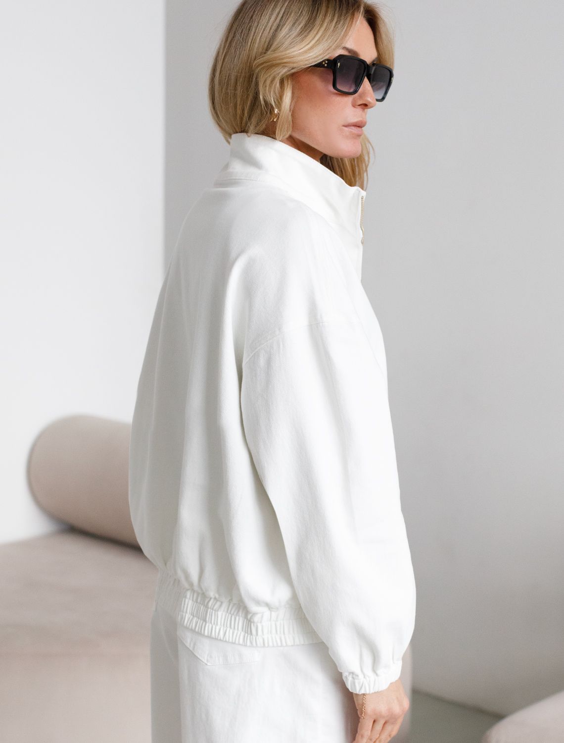 Джинсовый бомбер на молнии из эластичного денима средней плотности D51.034 белый