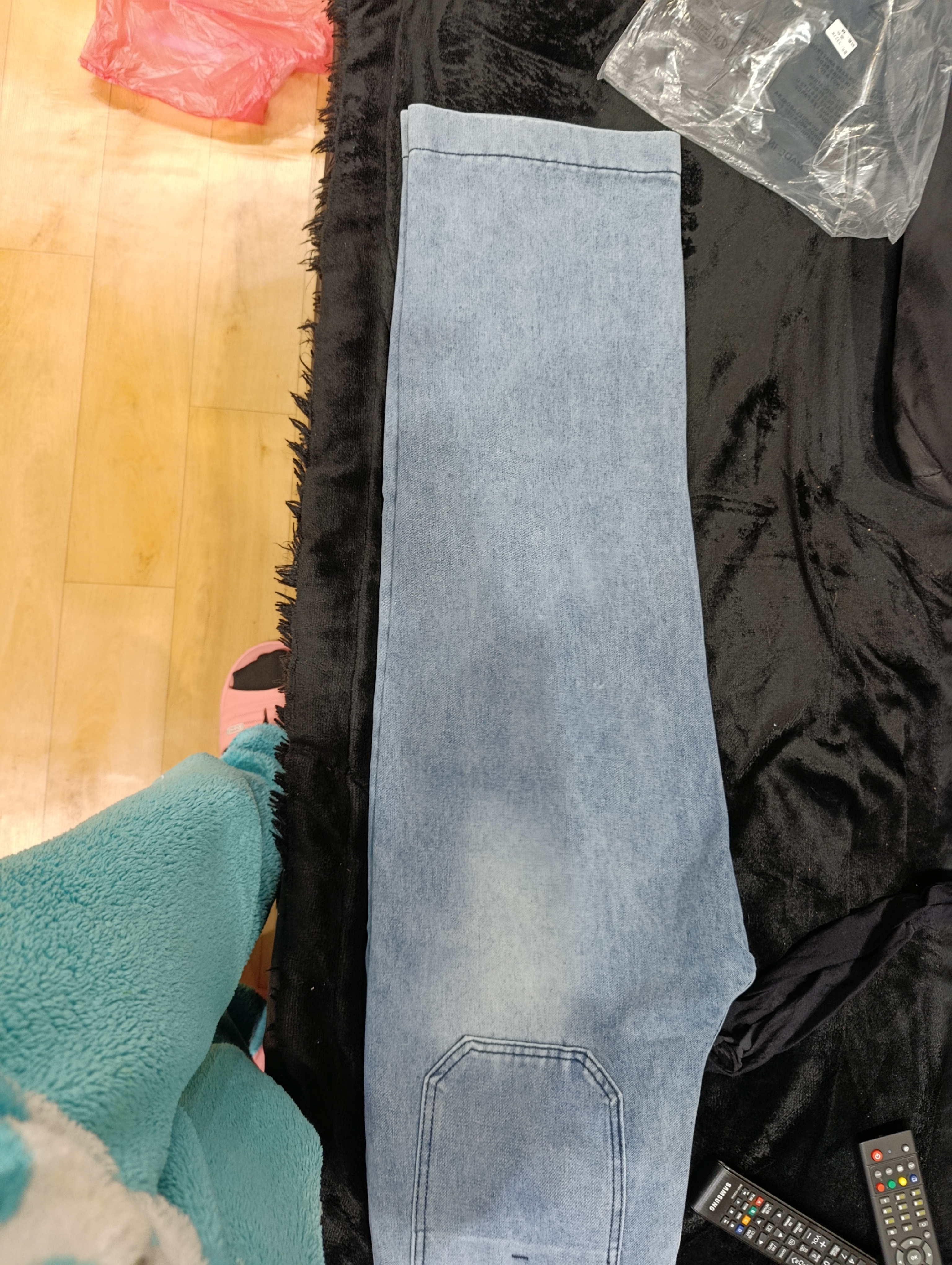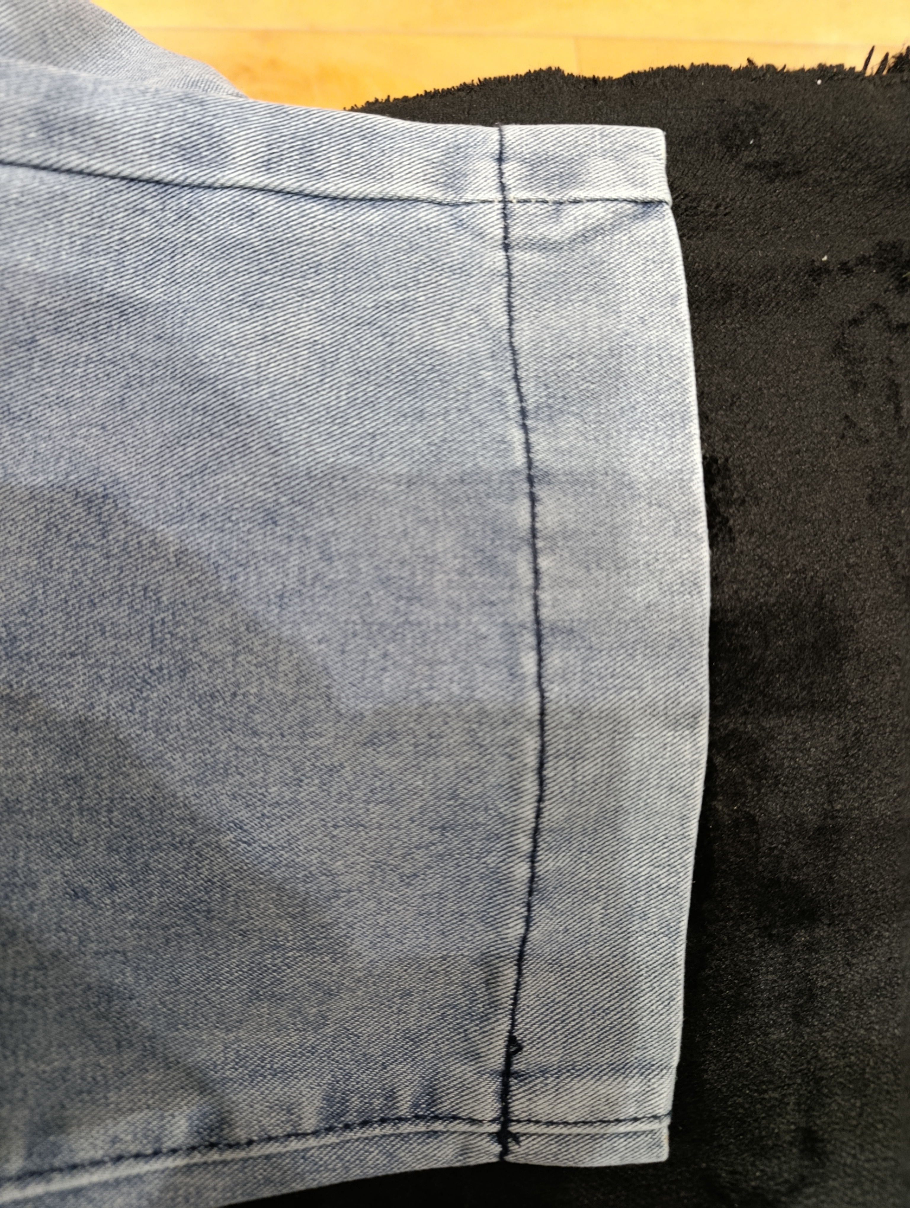 На фото расклешенные к низу, в реальности пришли совсем непонятного фасона, даже прямыми сложно назвать. Короткие, швы кривые, выделены ужасно, никаких переходов и размытых границ, просто пятно. И разогнуть не получится, строчка настрочена просто срам. Материал только ничего по качеству. Деньги на ветер. Придётся отдавать в добрые руки или обрезать по шорты.